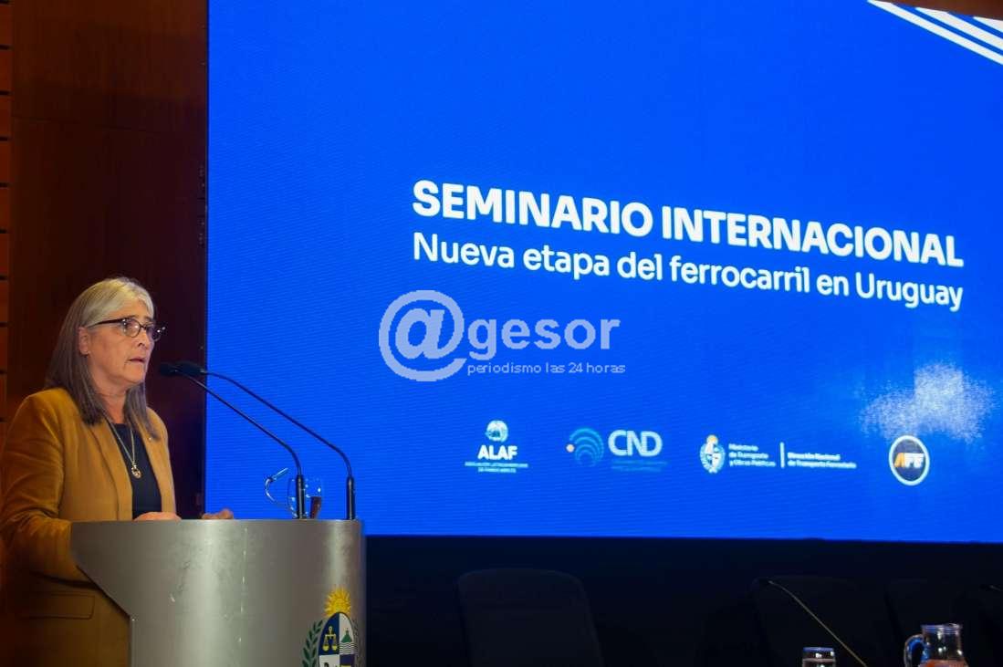 Durante la apertura del Seminario Técnico Internacional "Nueva Etapa del Ferrocarril en Uruguay", la ministra de Transporte y Obras Públicas, Lucía Etchever...