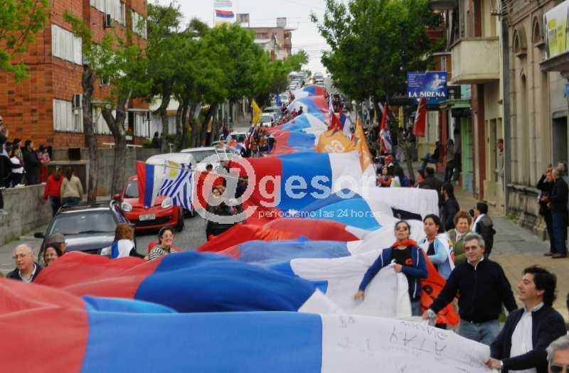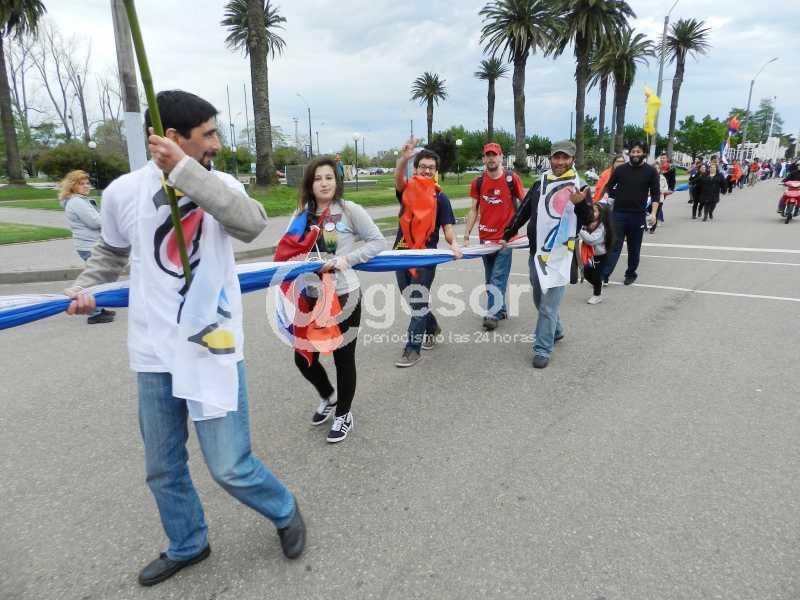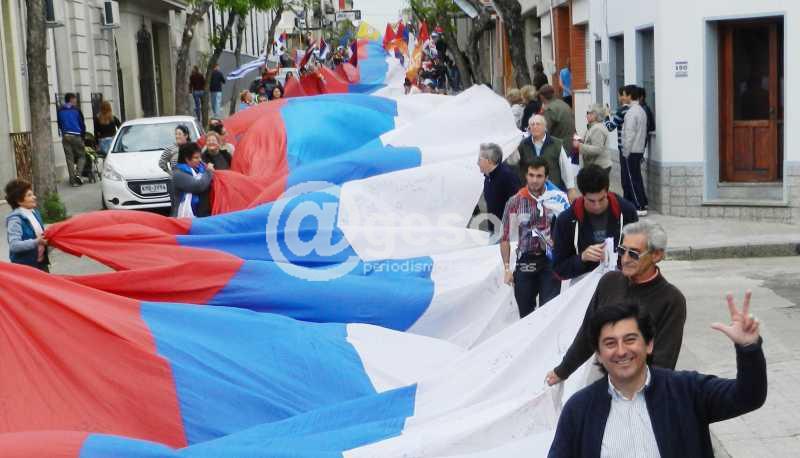 El "Banderazo" se inició en plaza Artigas y por calle Artigas se tomó hasta la rambla mercedaria donde culminó el esfuerzo y la actividad.