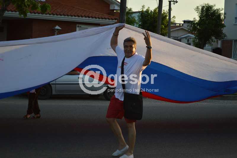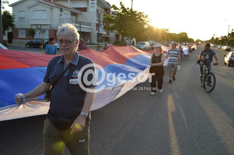 Cientos de personas fueron quienes llevaron la extensa bandera de aproximadamente 500 metros.