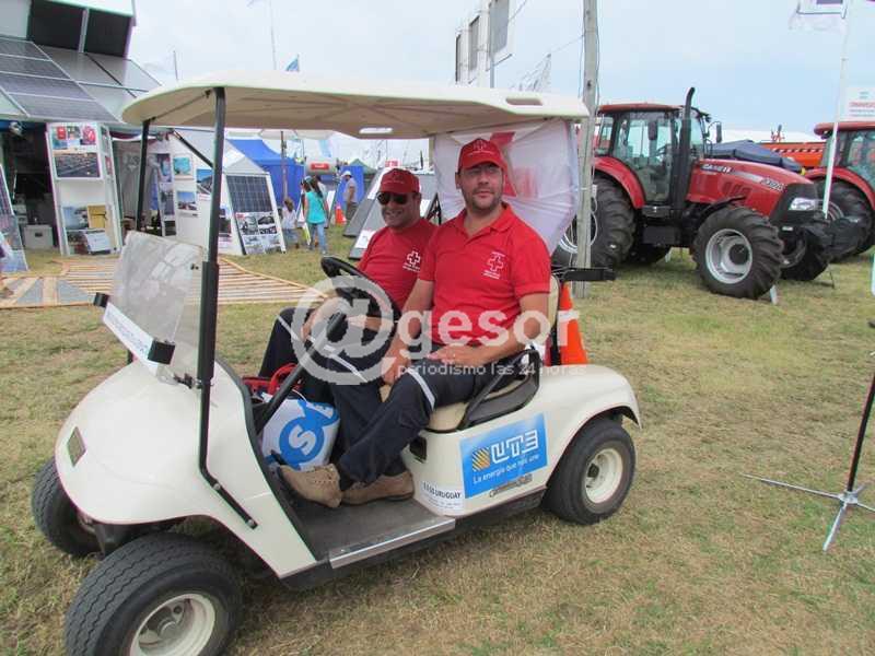 Si, tenemos para disposición de nosotros un carrito, que lo cedió la UTE, y cada 2 horas recorremos, y si siempre alguien precisa algo lo auxiliamos, con hielo, o las personas que trabajan, no en los stands, si no en los baños, se les ofrece hielo y agua fría. Y tenemos el equipo de radio, para comunicarnos, tenemos todo el predio.