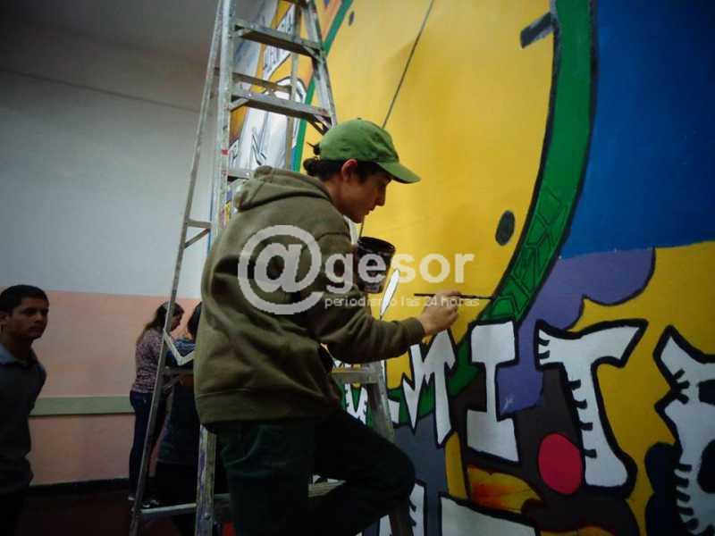 Alumnos del Liceo Nº 2 realizaron un mural en esa institución. Muchachos que por diferentes circunstancias habían abandonado los estudios y que decidieron retomarlos con gran entusiasmo. El Profesor Jorge Iannandrea nos cuenta esta interesante experiencia realizada, donde llenaron de color su lugar de estudios.