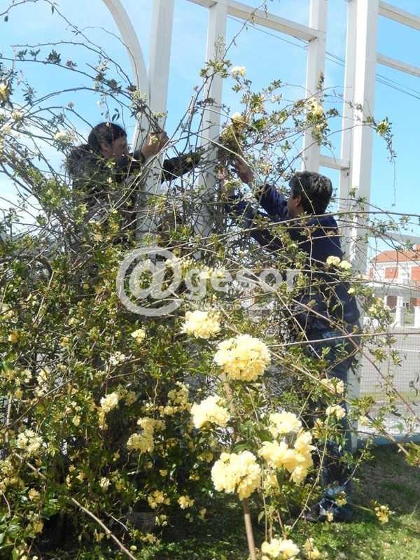 De los trabajos efectuados se destacan: acondicionamiento de tierra, fertilización y guiado de las plantas de rosas en la estructura de madera, para que éstas vayan ocupando la nueva estructura que fuera instalada en el 2012.
