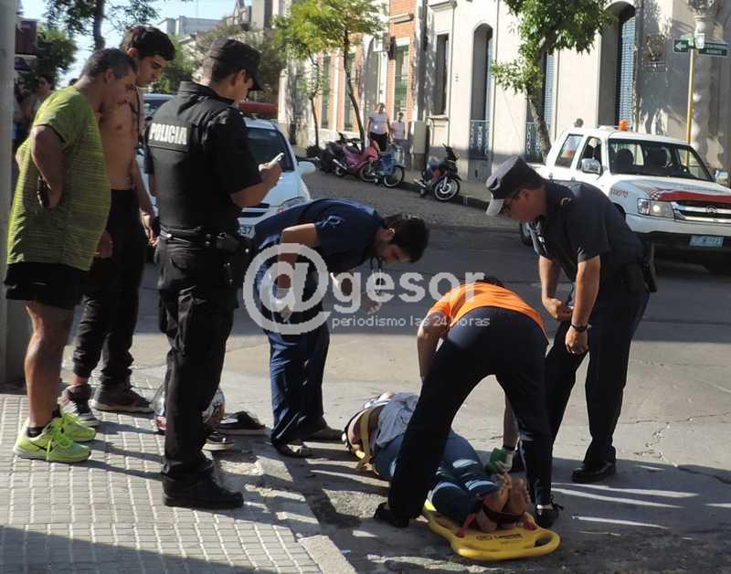 Una fuerte colisión se registró en horas de la tarde de este jueves en Mercedes, teniendo como protagonistas a un automovilista y un motociclista con acomapañante.