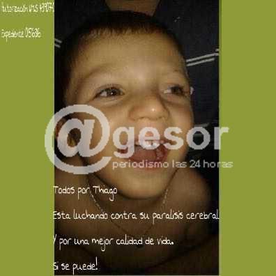 Thiago nació nació normalmente, pero a los tres meses de vida, sufrió un ahogo lo que le originó como consecuencia, parálisis cerebral.
