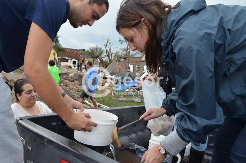 Recorriendo las calles del barrio Calvo de Dolores, mientras los vecinos acarreaban material, palos ramas y chapas para limpiar sus casas apareció una camioneta con varios jovenes en su caja que ofrecían un plato de comida caliente a quien lo quisiera. “Vecina, hay guiso calentito, está recién hecho”, decía un jóven mientras otros servían en unos recipientes para que los integrantes de las familias tuvieran comida. Nos acercamos a preguntarle de qué institución eran y la respuesta nos sorprendió, “de ninguna. Somos un grupo de amigos que no podíamos quedarnos a mirar televisión cuando hay familias que precisan. Un amigo tiene un restaurante y le propusimos la idea. Nos pusimos a cocinar y acá estamos”. Así de simple y de significativo fue su gesto, como el de tantos.