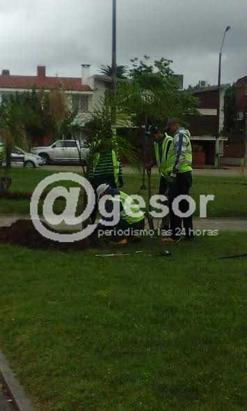 Personal de la sección Parques y Jardines de la Intendencia de Soriano procede a realizar tareas de reposición de arboles y arbustos en varias plazoletas de la rambla costanera de Mercedes.