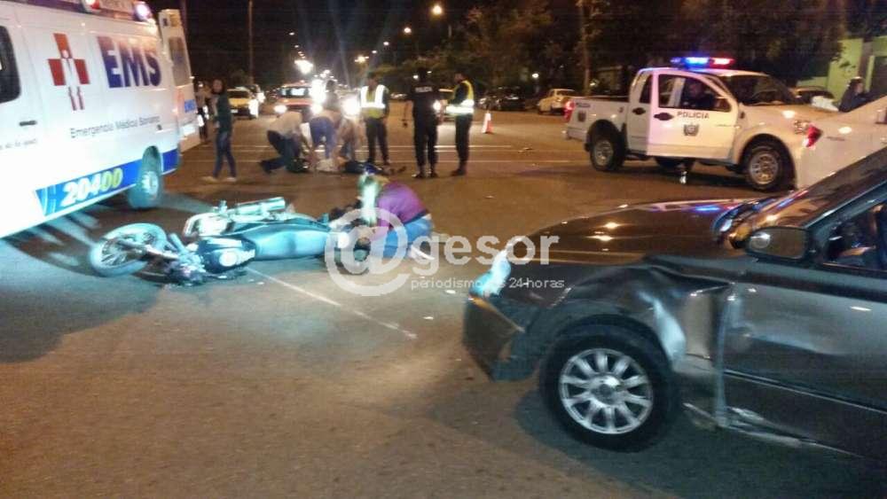 En la noche de este sábado próximo a las 23.30 horas ocurrió siniestro de tránsito en la rambla mercedaria, cuando dos vehículos, un automóvil y una moto circulaban por avda. Asencio y el coche indica con su señalero que va a doblar hacia Ituzaingó, pero la moto que venía detrás no pudo frenar y colisionó con el auto a la altura de una de sus puertas. Ambos ocupantes de la moto salieron despedidos y resultaron con lesiones que determinaron su traslado a centro asistencial para una mejor atención y ser evaluados, tras recibir atención de emergencia médica.