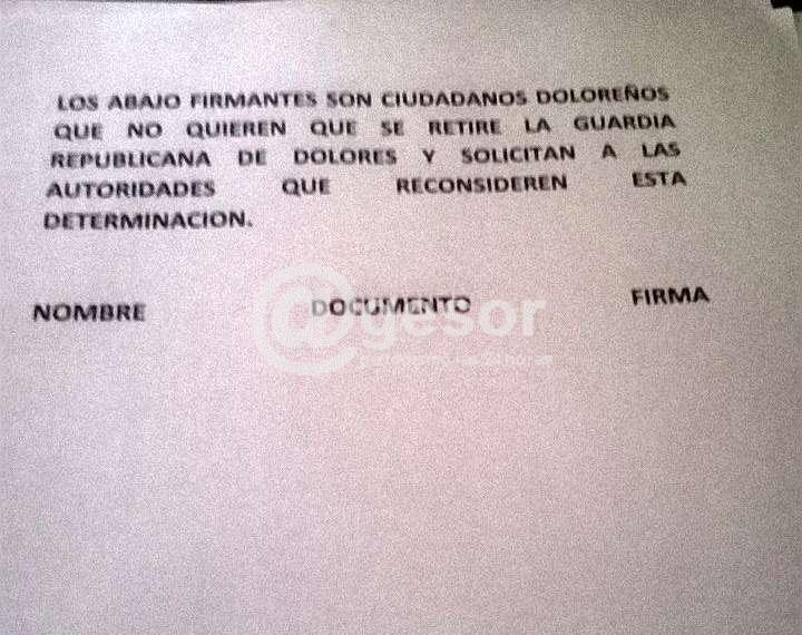 Los ciudadanos Luciano Andriolo, y Marco Morosini salen a juntar firmas para que las autoridades reconsideren la determinación de retirar a la Guardia Republicana de Dolores.
