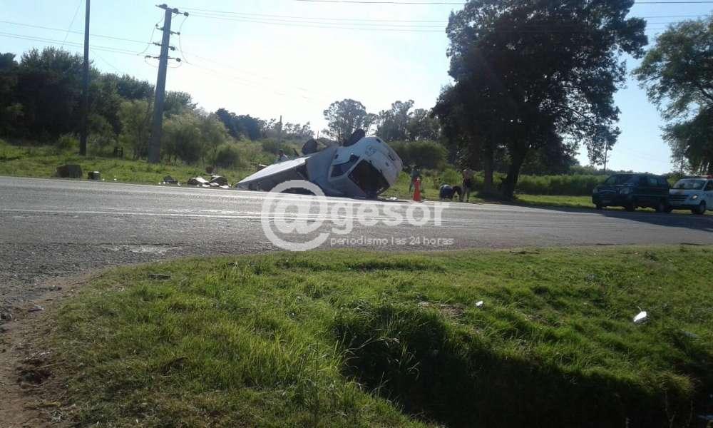 Un siniestro de tránsito protagonizado por un camión que transportaba comestibles y bebidas, circulando por Ruta 2 de Sur a Norte, en las huellas que quedan en el pavimento por el tránsito de los camiones de gran porte, el conductor perdió el dominio del vehículo, volcando. Viajaban en el camión dos personas mayores de edad, el conductor resultó ileso, y el acompañante fue atendido por Vivem en el lugar y dado de alto.