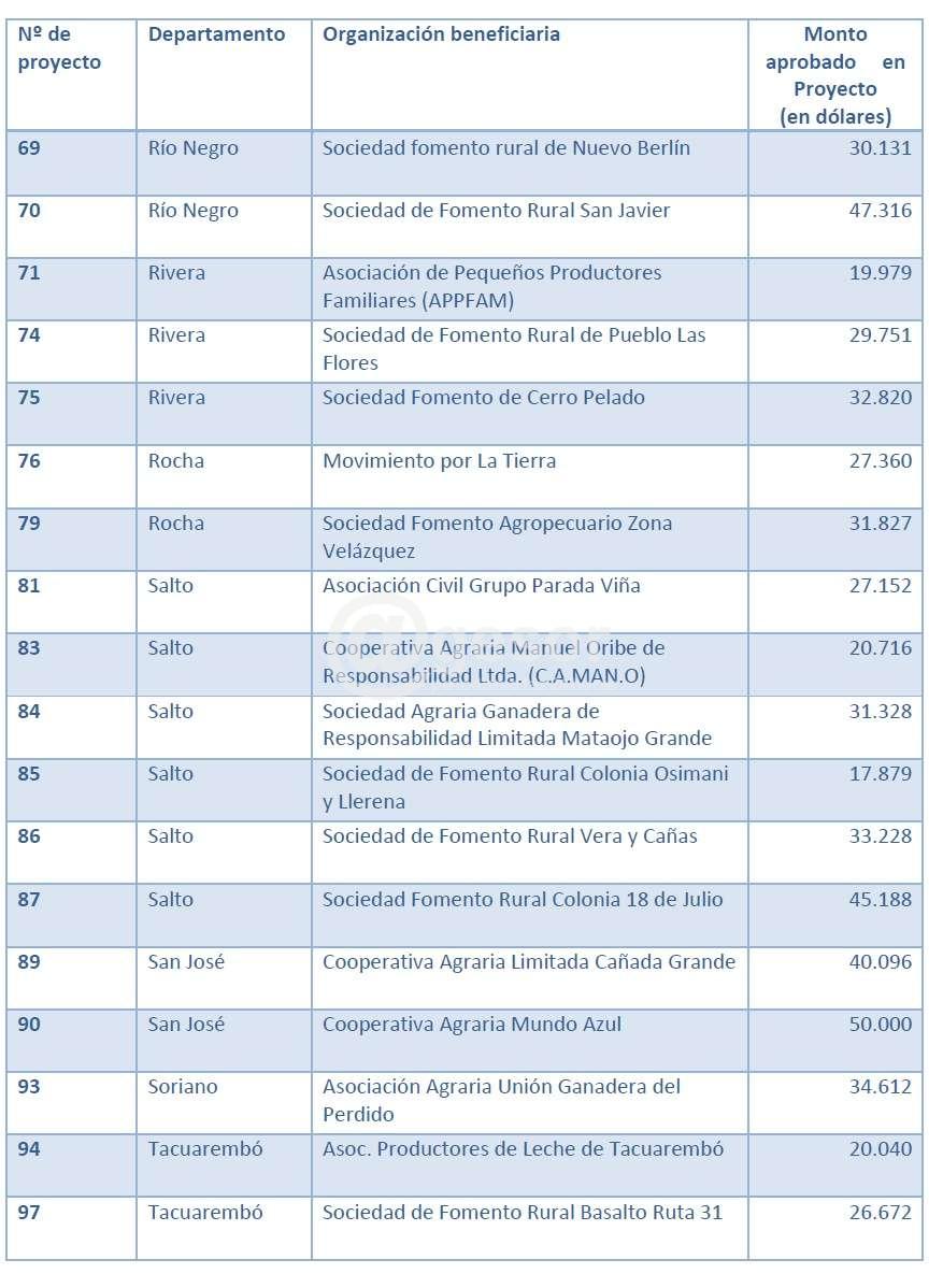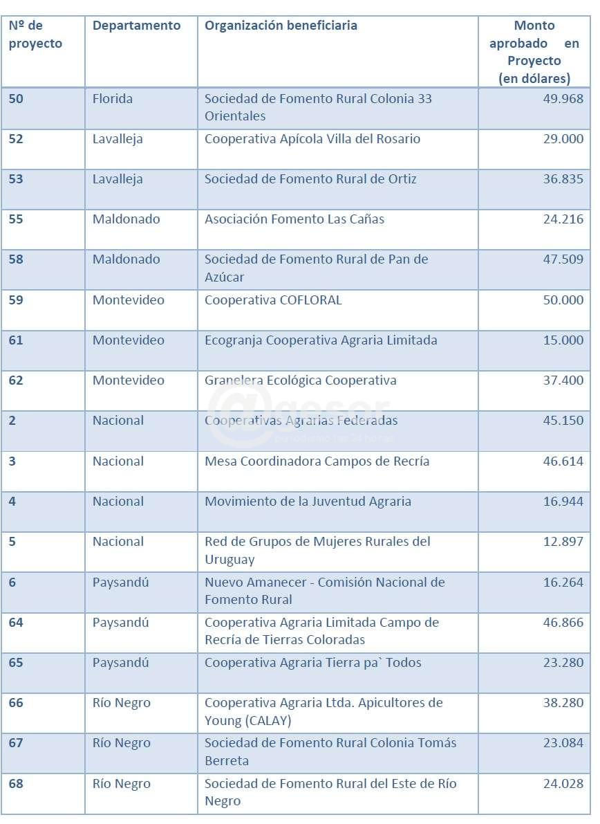Esta convocatoria que impulsa la Dirección General de Desarrollo Rural del MGAP, con la financiación del Programa de Desarrollo Productivo Rural (Contrato de Préstamo BID Nº 2595 – UR), convocaba a organizaciones de productores/as familiares y pescadores/as artesanales a presentar propuestas orientadas a mejorar su inserción en las cadenas de valor, promoviendo entre otros, innovaciones a nivel de sus productos, procesos productivos, organizativos y logísticos.