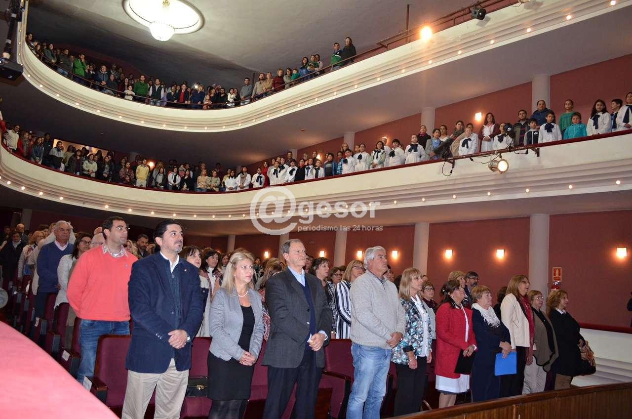 El Teatro “28 de febrero” se colmó de público para conmemorar el 150 aniversario de la Escuela N° 1 “José Pedro Varela”. El acto contó con la presencia de autoridades municipales, legisladores, autoridades de Primaria y Secundaria, ex maestros y directores, ex alumnos y padres y alumnos de la institución.