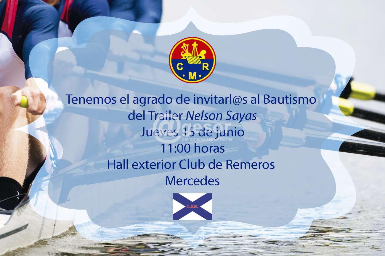 El jueves próximo el Club de Remeros Mercedes bautizará el tráiler de botes con el nombre de Nelson Sayas. Será un acto que se realizará en el Hall exterior del Club de Remeros Mercedes, a las 11horas.
