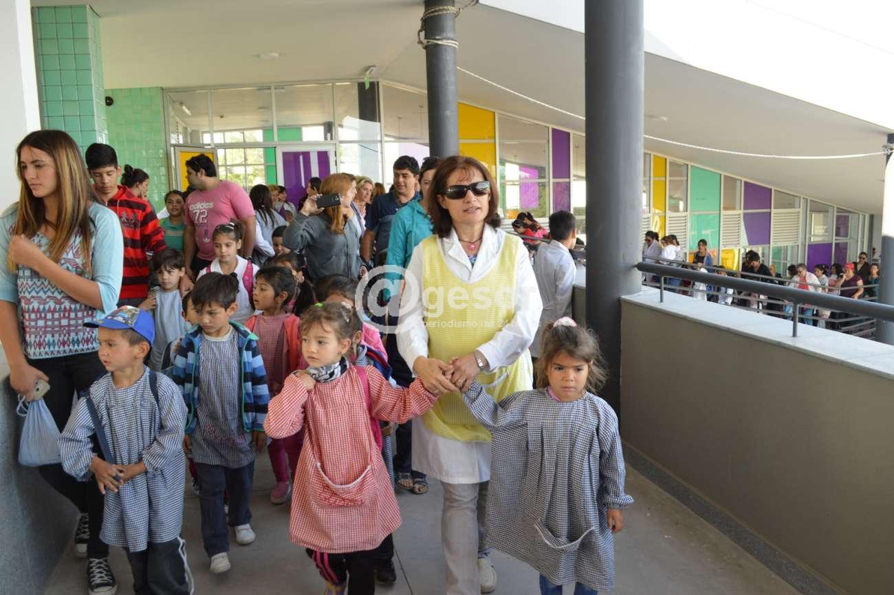 Pasadas las 8.00 horas, con el hall de acceso completo de niños y padres, la Directora Angela Giménez les dio la bienvenida y los hizo pasar, en la oportunidad acompañada por los maestros del centro escolar y la Inspectora Serrana González.