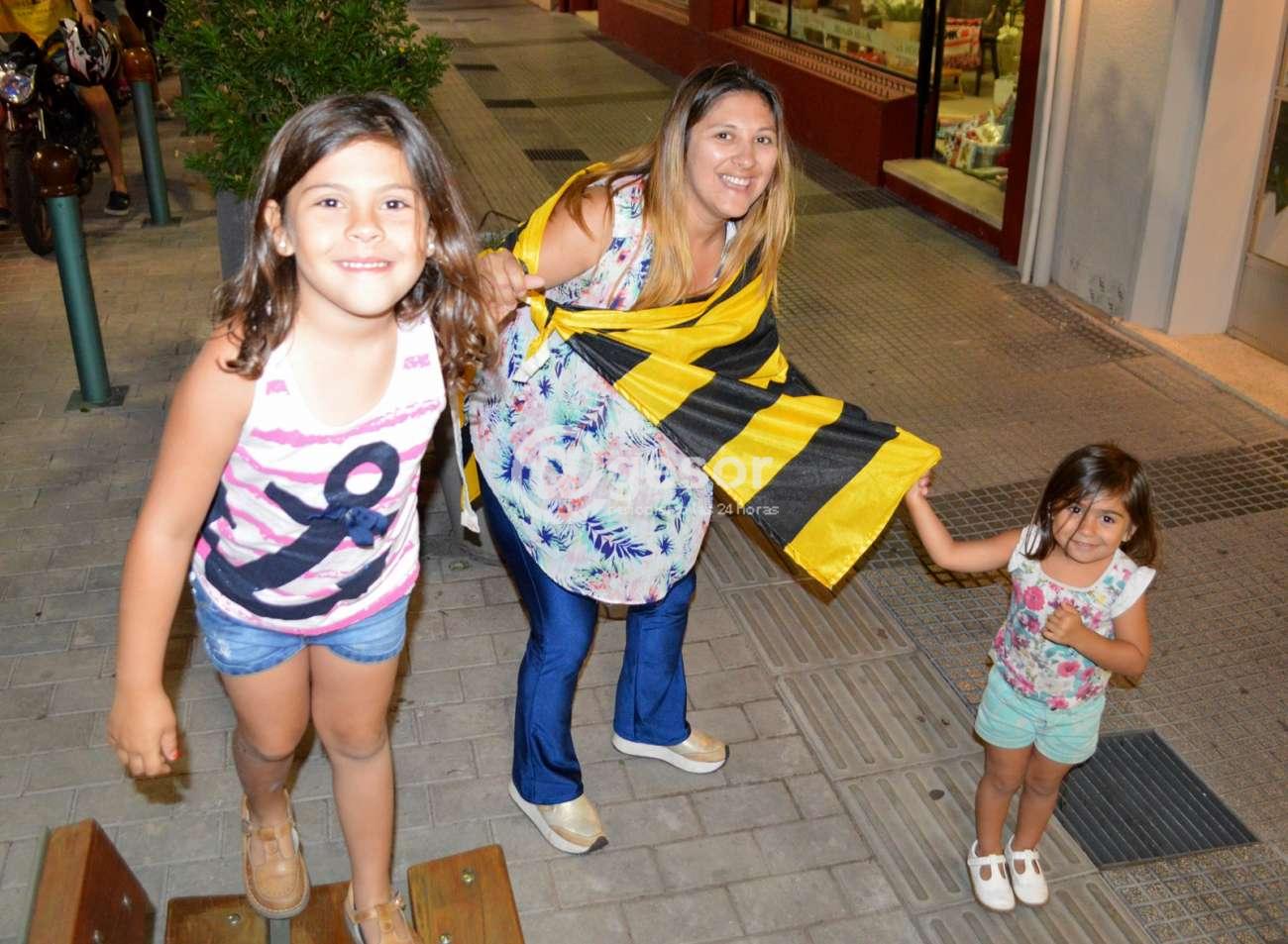 La barra Mercedes que se reúne en Ferrería y Artigas, junto a hinchas que se unieron desde distintos puntos de la ciudad, caminaron por la zona céntrica rumbo a la rambla mercedaria cantando la alegría por el título.