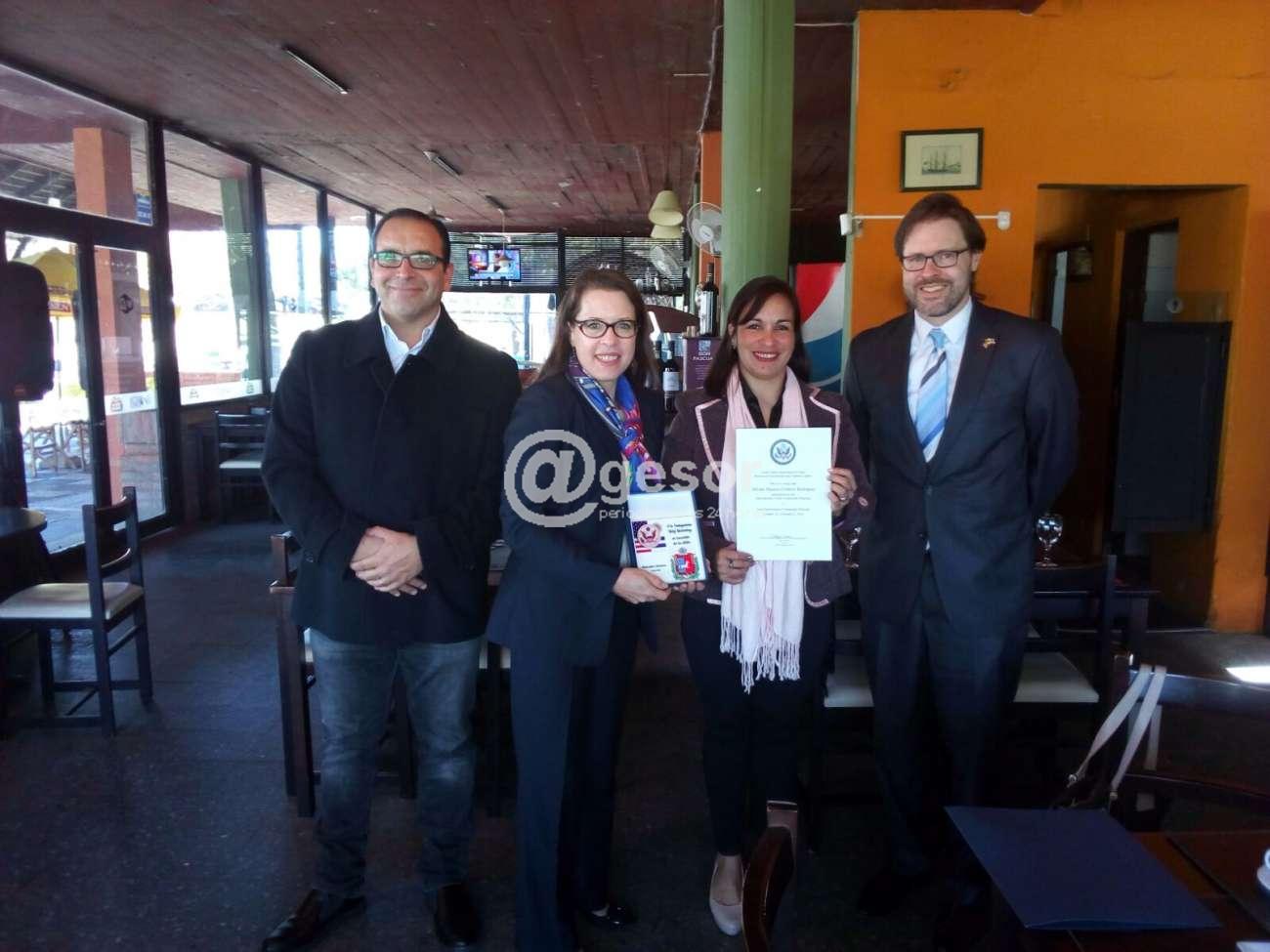 El encuentro entre la Cria. Cordero y la Embajadora Keiderling se dio en el marco de un almuerzo, donde se le entregó el diploma, en restaurante de la franja costanera de Mercedes.