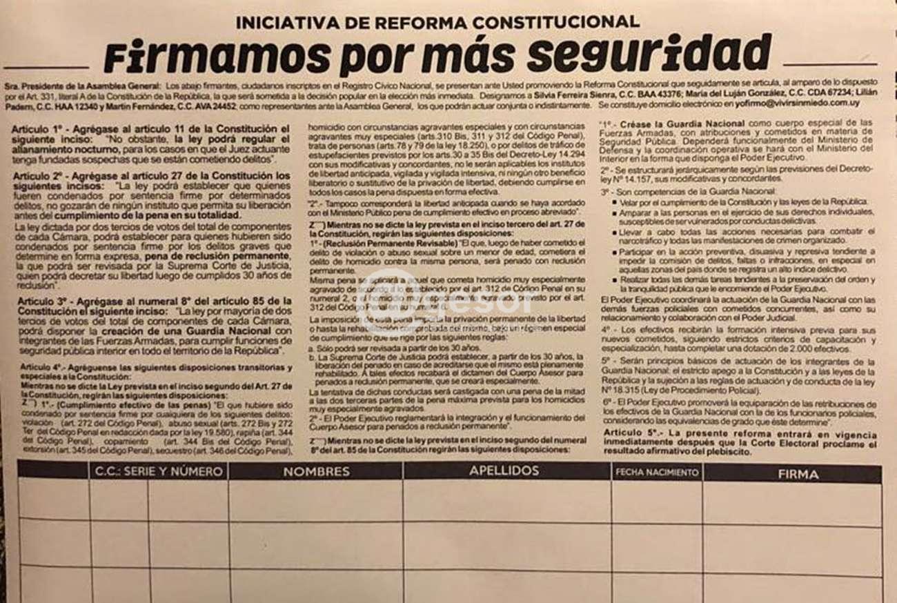 Además del texto de la iniciativa, se presentó la Comisión Nacional Pro Plebiscito, que es presidida por Silvia Ferreira Sienra, hija del caudillo blanco Wilson Ferreira.