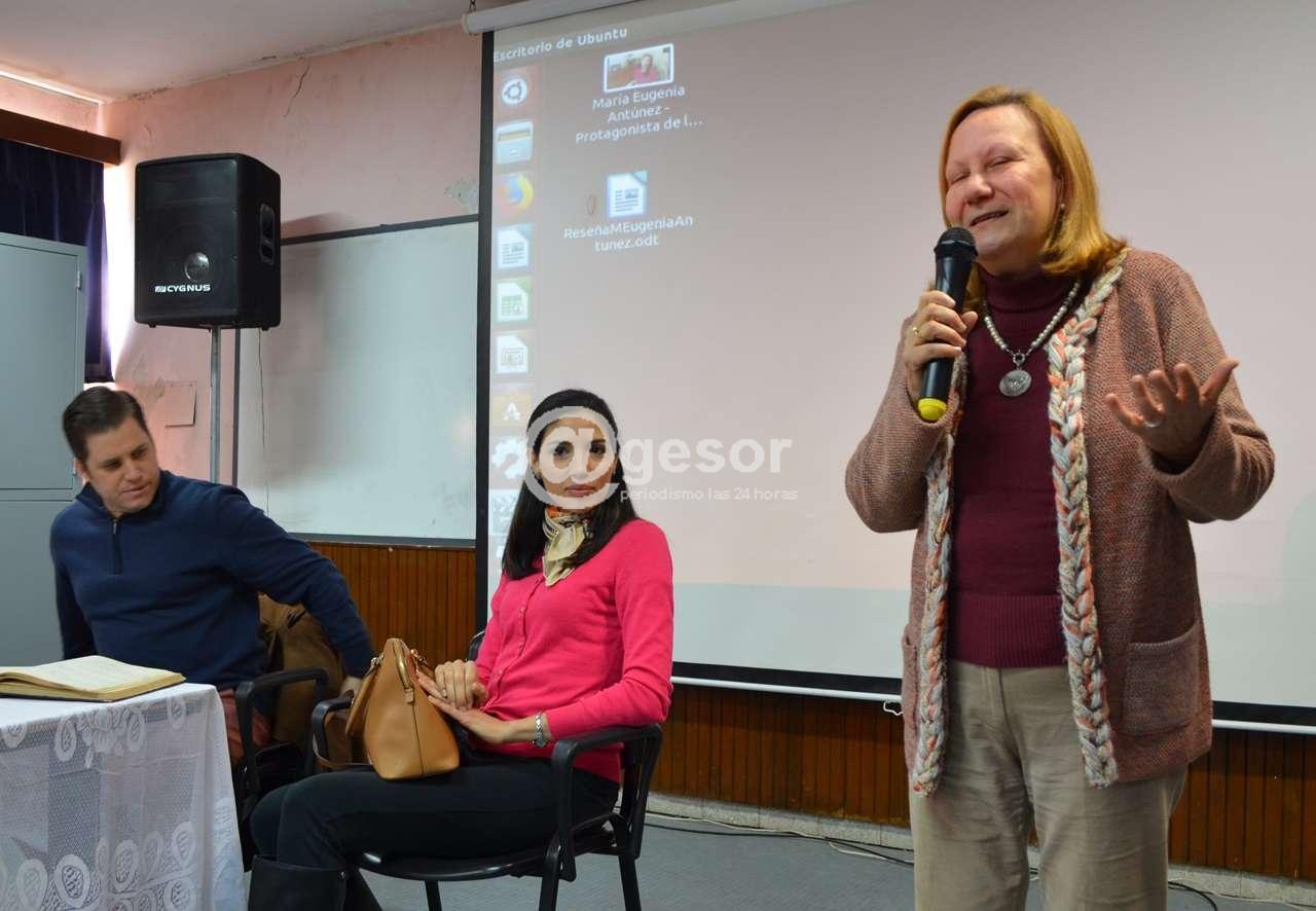 María Eugenia junto a su esposo compartieron experiencias y dialogaron con los estudiantes del Bachillerato Artístico y el público que llegó hasta el Liceo N° 1, en una actividad que fue cerrada por los coros del Liceo anfitrión y del Liceo N° 2.