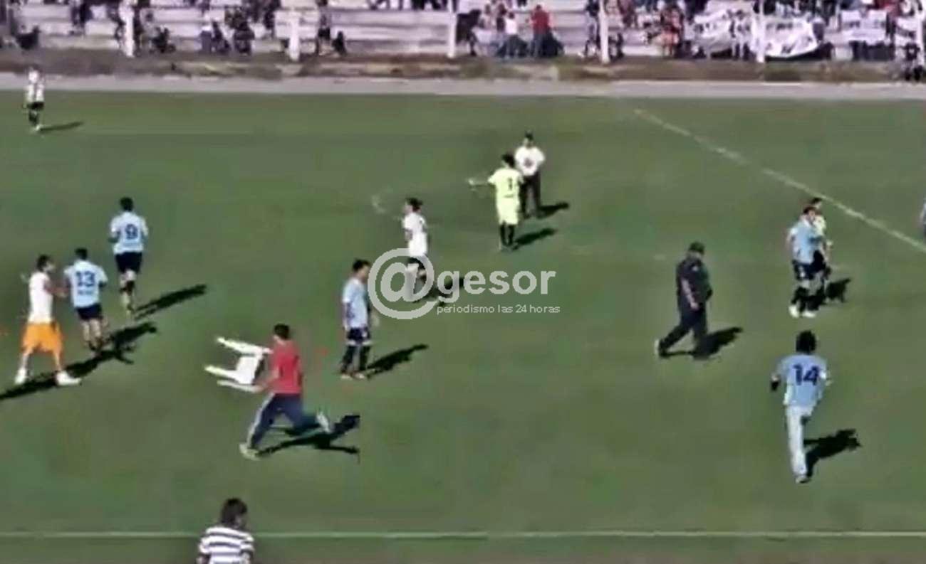 Se trata de los jóvenes jugadores Sebastián Homenchenko que el 5 de octubre cumplió 18 años y Braian Alzáibar de 19 años, quienes debieron correr en medio de los incidentes porque hinchas con camisetas de Olímpico los corrieron, tratando de escapar a dos perros que eran animados para ir contra los chiquilines, a la vez que uno de los hinchas llevaba consigo una silla de plástico y Homenchenko llegó a ver que uno de los hinchas portaba un arma blanca. Los jugadores lograron escapar a quienes los corrían, refugiándose con gente de su equipo.