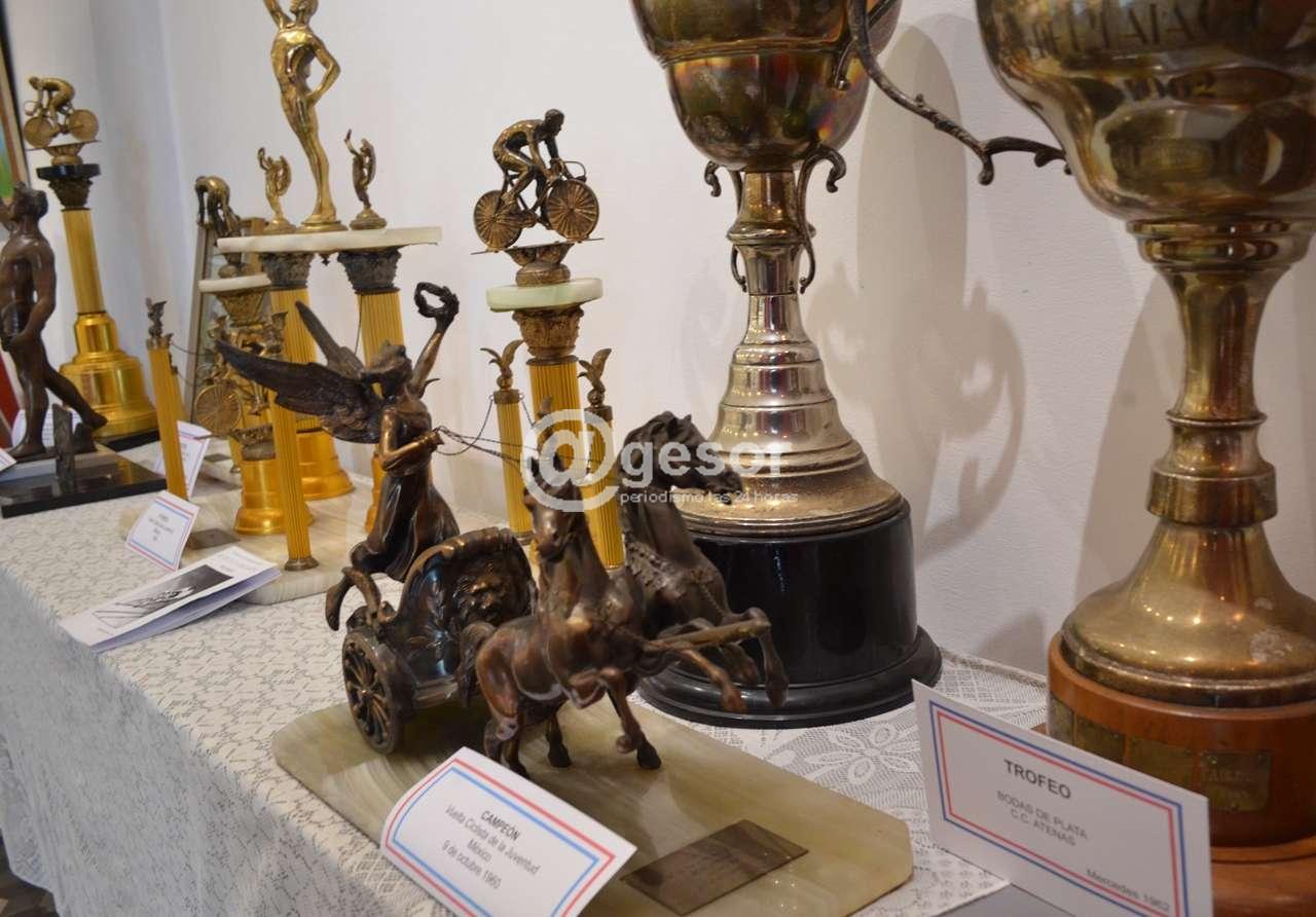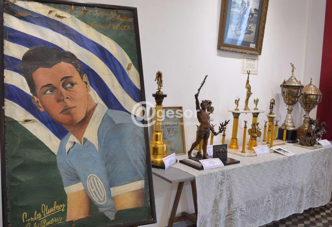 Trofeos, medallas, camisetas y recuerdos de los ciclistas más destacados de Soriano reunidos en una exposición que se presenta en Casa de la Cultura de Mercedes.
