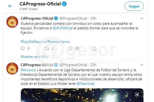 En una segunda comunicación Progreso agregó: “Nuestra parcialidad contará con ómnibus sin costo para acompañar al equipo. Enviamos a @AUFOficial el pedido formal para que se concrete la fijación”.