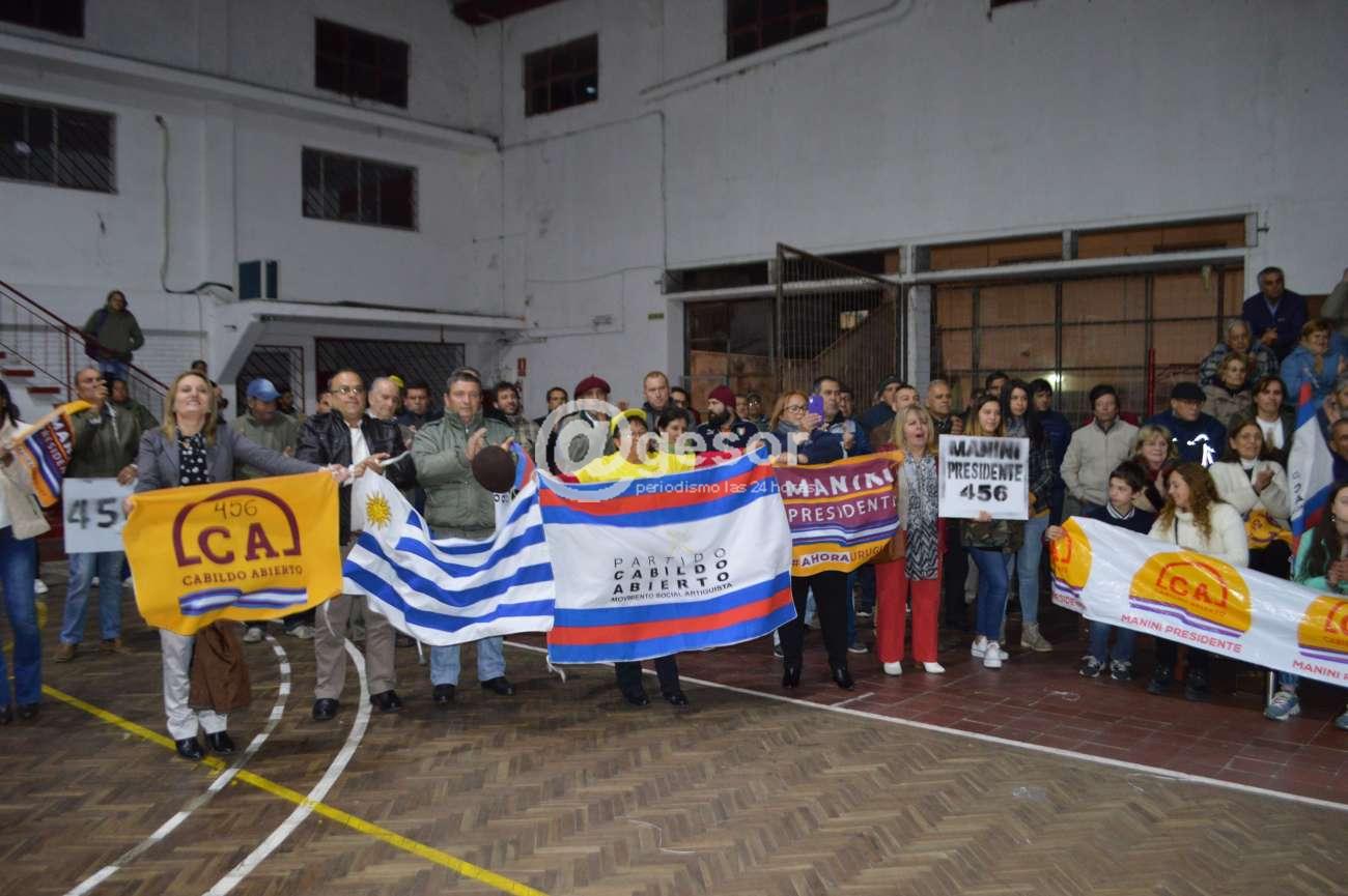 Y hoy comienza una nueva historia, que es continuación de esa vieja historia y comienza de la mano de Guido Manini Ríos y de Cabildo Abierto, de ustedes!!! Porque Cabildo Abierto son ustedes!!! Ustedes son el pueblo oriental que no se alza en armas, levanta la credencial y va a votar por quien quien lo conduzca con firmeza, con entusiasmo, con ganas, con responsabilidad, con orgullo de ser oriental!!! Eso es lo que esperamos a lo largo y lo ancho de la República Oeriental del Uruguay los que sentimos profundamente a la Patria y aquì estamos, blancos, colorados, frenteamplostas desilusionados, todos unidos una vez más, eso es Cabildo Abierto, el partido de la unidad nacional contra los problemas".