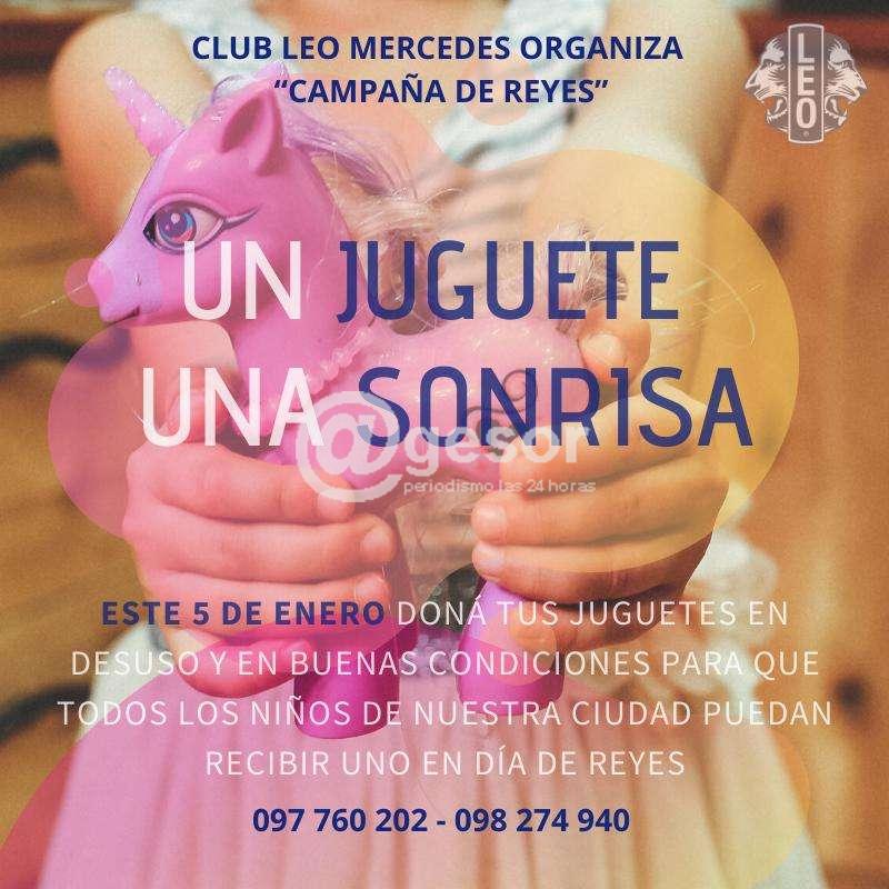 Como todos los años Club LEO Mercedes (organización sin fines de lucro conformada por jóvenes que buscan el liderazgo a través del servicio a la comunidad) bajo el slogan “un juguete una sonrisa” organiza la campaña de reyes en la cual como tradicionalmente la mañana del 5 de enero de 8:00 a 14:00hs, en víspera de reyes magos recorremos la ciudad en un camión brindado por la IMS en busca de juguetes en desuso y buen estado que los vecinos puedan donar, además los niños pueden hacer entrega de la carta para los reyes magos. Luego los juguetes son clasificados para ser entregados el día 6 de enero por los mismos reyes magos en distintos barrios de la periferia de la ciudad, merenderos, caifs y el hospital, donde los niños también pueden sacarse fotos con los reyes magos. En caso de no poder arrimar los juguetes en el recorrido de la mañana estaremos recibiendo donaciones en nuestra sede (Detomasi esq. Cassinoni) a partir de las 18:00hs También ofrecemos números de teléfono para contactarse en caso de no poder arrimar los juguetes 098 274 940 - 097 760 202. Como todos los años esperamos contar con el apoyo de todos los vecinos de la ciudad que nos ayudan con esta obra que hace felices a muchos niños!