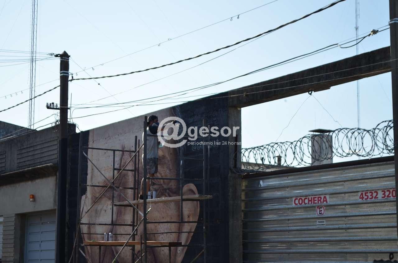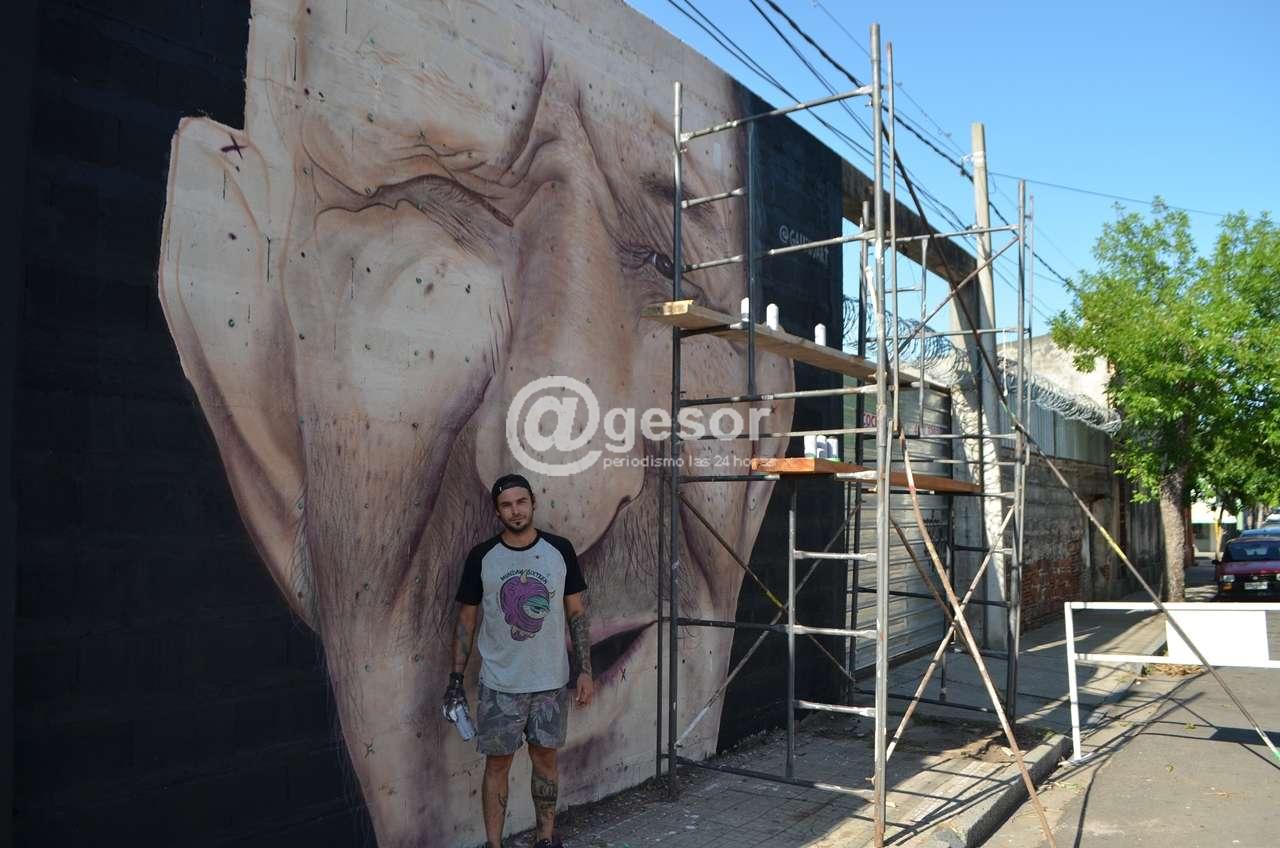 Llegó a Mercedes a participar del Festival 33 grados de arte urbano y en un muro de importantes dimensiones retrató a Coyita, personaje popular y querido de esta ciudad.