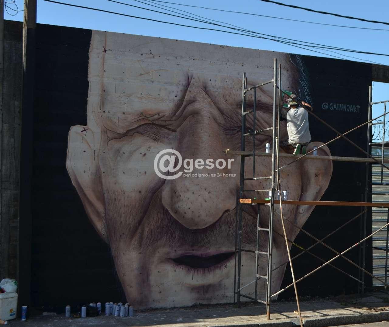 En una pausa de su trabajo dialogó con @gesor y comentó “vengo haciendo homenajes a uruguayos y los personajes van saliendo. Esta vez vine sin saber a quién pintar en Mercedes y se dio”. Comentando que siembre busca “personas que representen en lugar”.