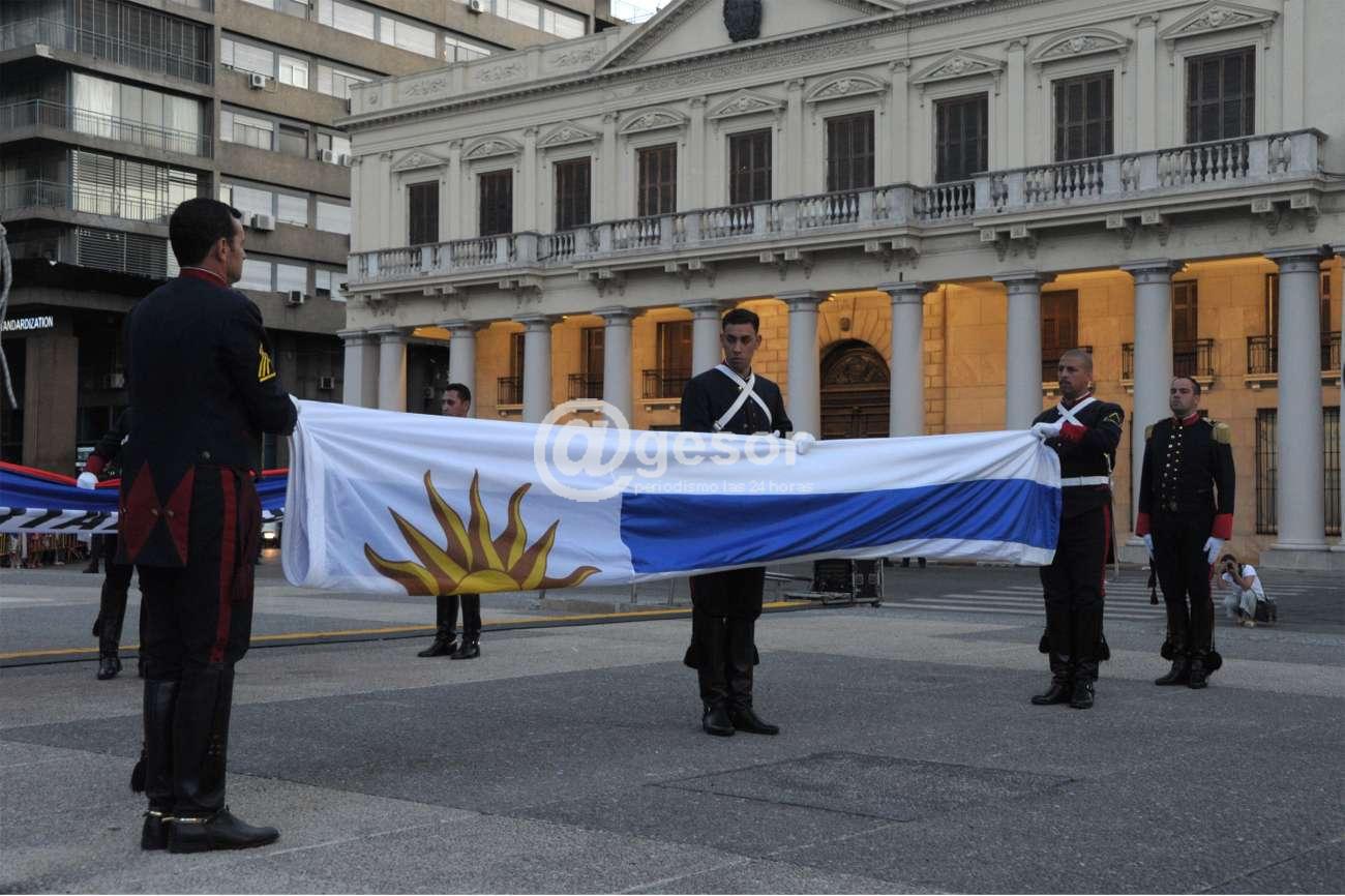 Antes del comienzo de la ceremonia, Vázquez saludó a los efectivos formados, pertenecientes al regimiento Blandengues de Artigas de Caballería N.º 1, y luego el numeroso público presente entonó el himno nacional.