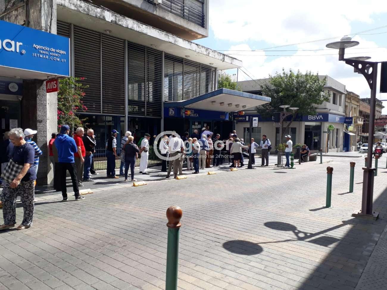 Un importante número de personas concurrieron sobre la mañana de este viernes al local del Banco República (BROU), para percibir los haberes correspondientes al beneficio de jubilaciones, provocando una larga fila con aglomeraciones, algo contraindicado en estos tiempos.