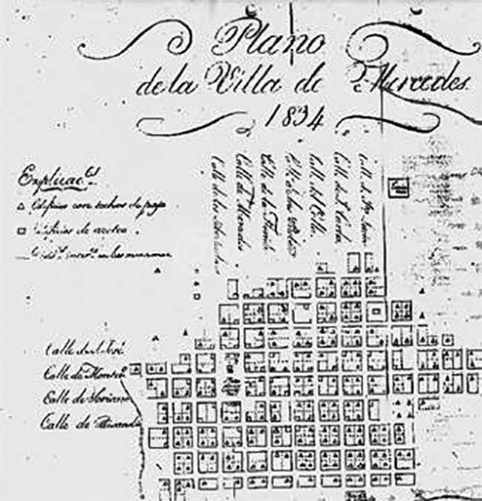 Por eso es bueno transcribir algunos tramos de un artículo del Lic. José Olazarri, publicado en el año 1991 en el N° 7 de la Revista HUM BRAL. “Cada tanto parece que sucediera un vendaval en el nomenclátor de Mercedes. Hay calles que en un par de siglos han recibido al menos cinco nombres, plazas con dos o tres. Una excepción se registra sin embargo con la calle Paysandú que bajo la misma denominación se observa en un notable plano de la ciudad en 1834, dibujado por el Pbro. Luis de la Peña”. (…) “Por el mismo documento, sabemos que en aquellos años nacía en los montes de algarrobo que entonces orillaban el Dacá por donde ahora cruza Rivera. Eran once cuadras en total hasta casi Varela, que cubre lo que fue la cañada “La Zanja”. (Por ahí ingresa el río Negro en las grandes crecientes, impidiendo el paso). Pero en aquellos tiempos igualmente era una de las salidas de la ciudad hacia los pagos de Bequeló y Cololó, Tala y Arroyo Grande.