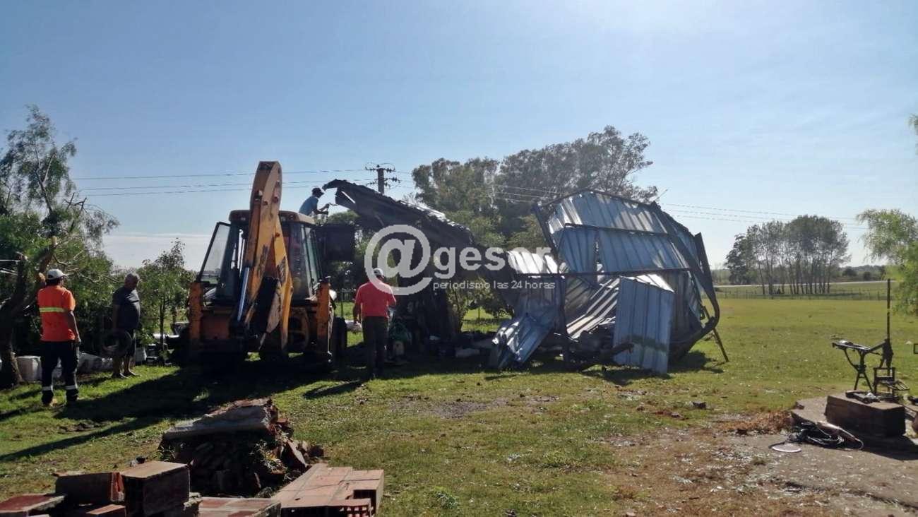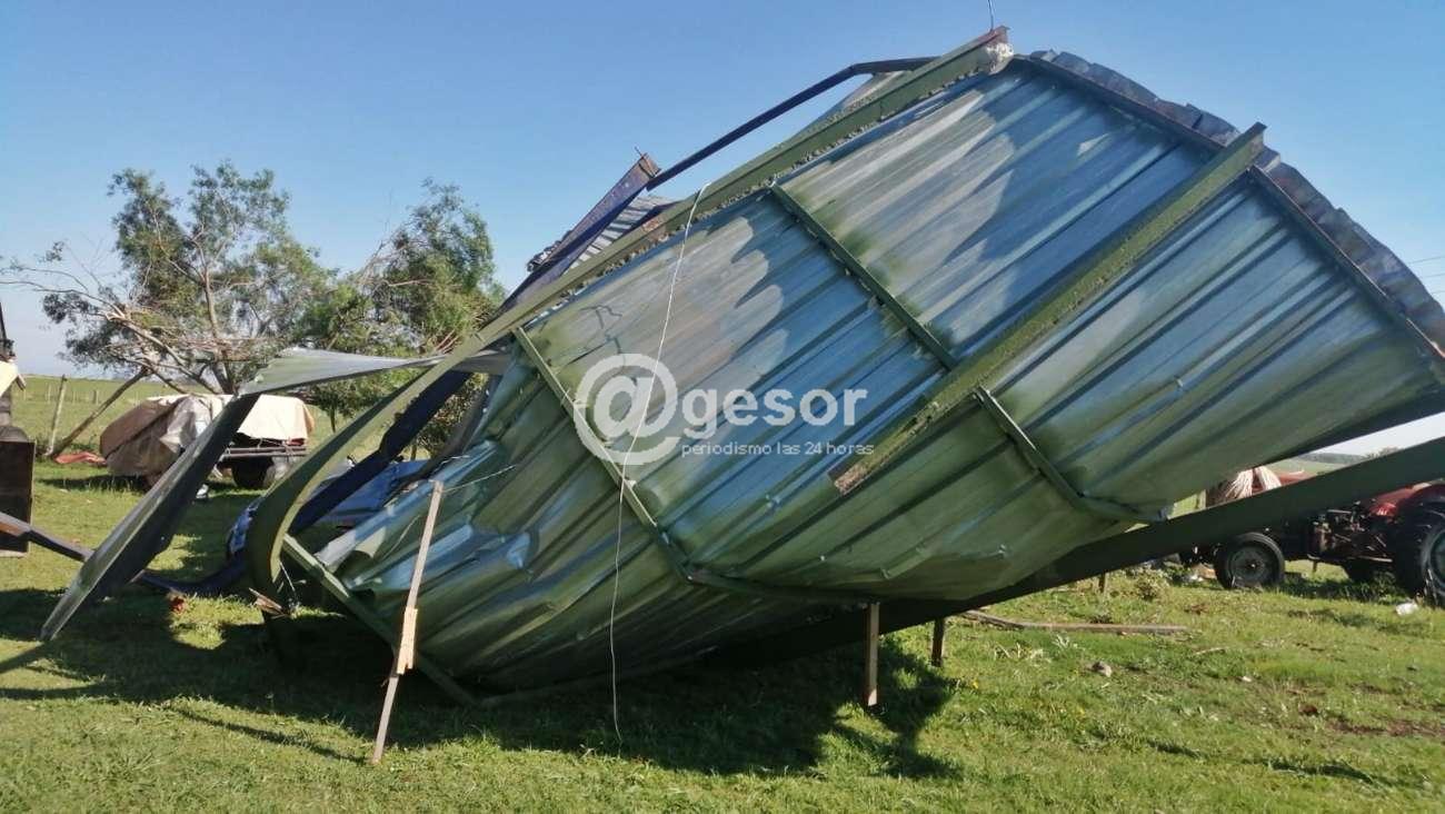En cuanto a daños en zona de Ruta 2, a la altura del km 240 se produjo la voladura de techo de zinc en finca de familia Jamen y daños menores en techo de otra finca vecina.