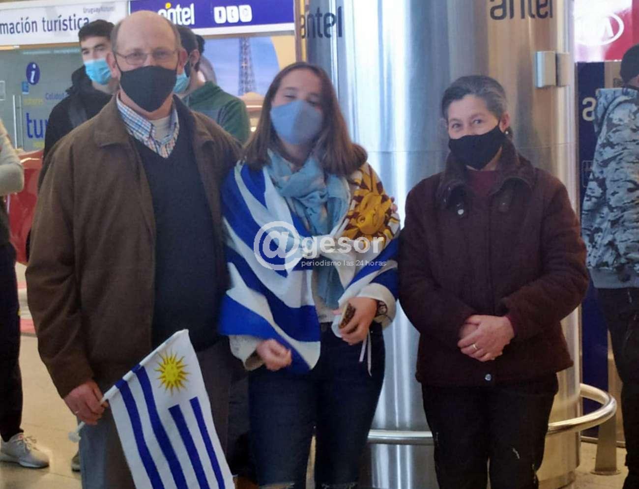 Los padres y otros familiares junto a allegados aguardaban la llegada de Felipe y Bruno, así como algunos medios de comunicación, los remeros ya venían con el cumplimiento de medidas de prevención establecidas y para cumplir con otras en los próximos días.