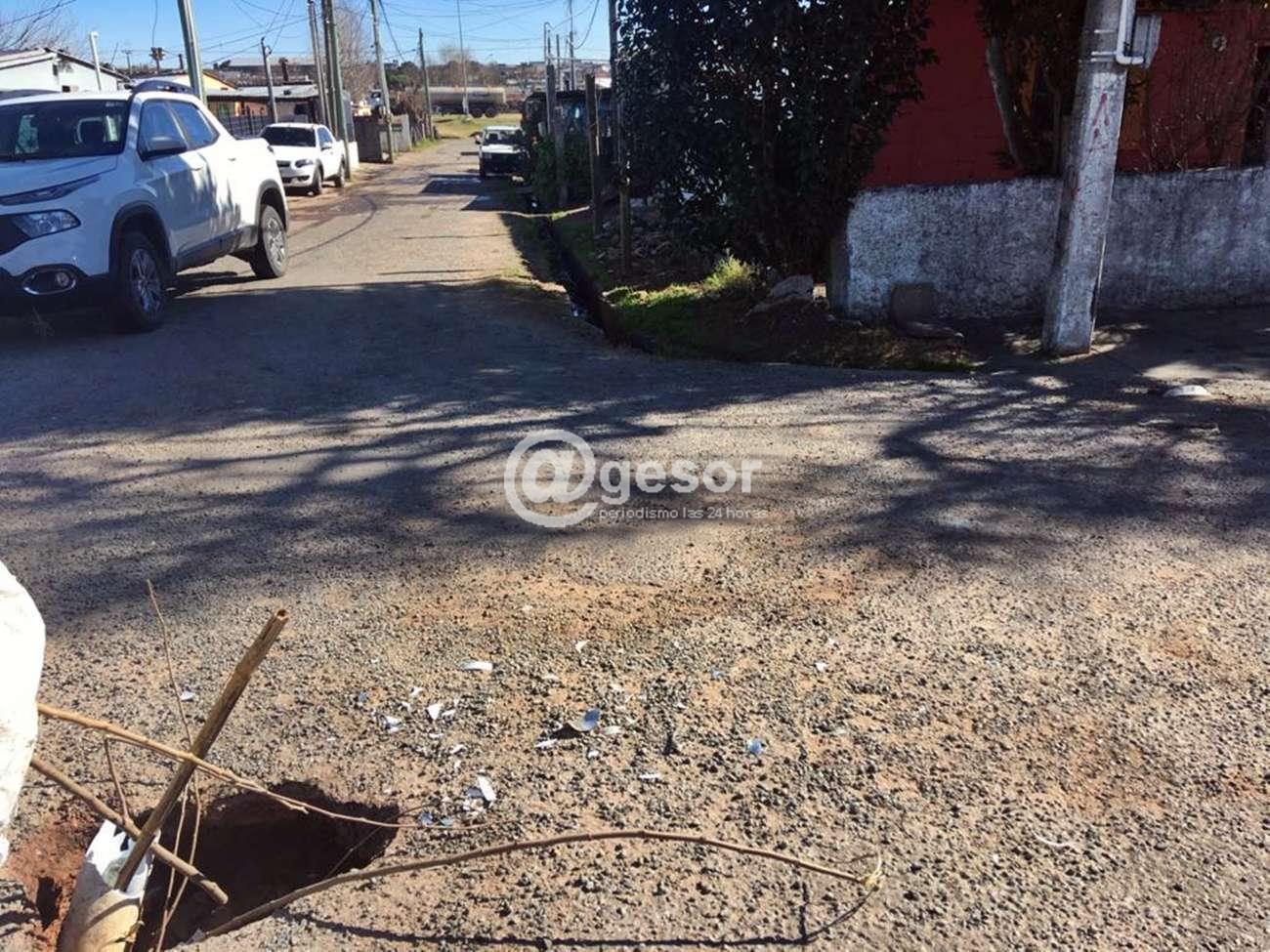 En recorrida por barrio Chaná, el Edil José Lavista, junto al Edil Luciano Andriolo vecinos nos muestran un pozo que hay en calle Kelly y Aída Vespa. Ahí donde está la cámara de saneamiento, debido al intenso tránsito es que se va agrandando el mismo.