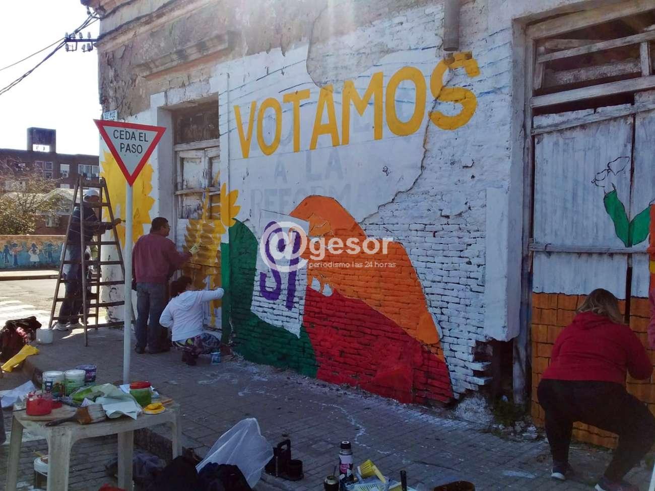 Mientras la Corte Electoral continúa con el proceso de validación de firmas para determinar la convocatoria, en caso de alcanzarse el porcentaje establecido por la ley para llamar a referéndum con la finalidad de poner a consideración de la población 135 de la Ley de Urgente Consideración (LUC), militantes del Frente Amplio, entre ellos integrantes de la Brigada Idea Vilariño, pintan los muros de la añosa finca de Casagrande y Artigas en Mercedes, llamando a votar SI por la derogación de los mencionados artículos.