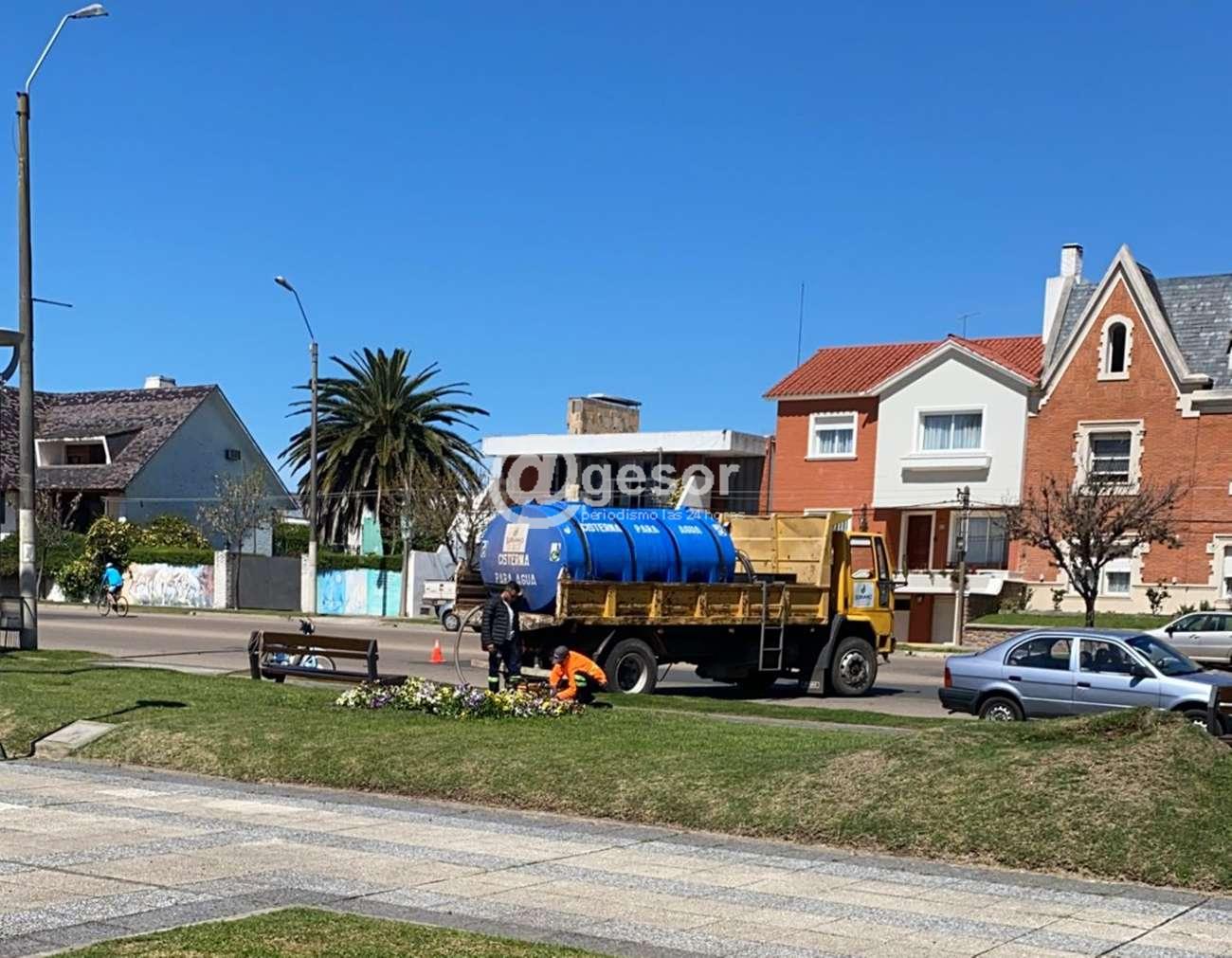 Se habilita esta tardecita el nuevo sistema lumínico y de bombeo de agua en la fuente de la plazoleta República del Paraguay en la rambla de Mercedes.