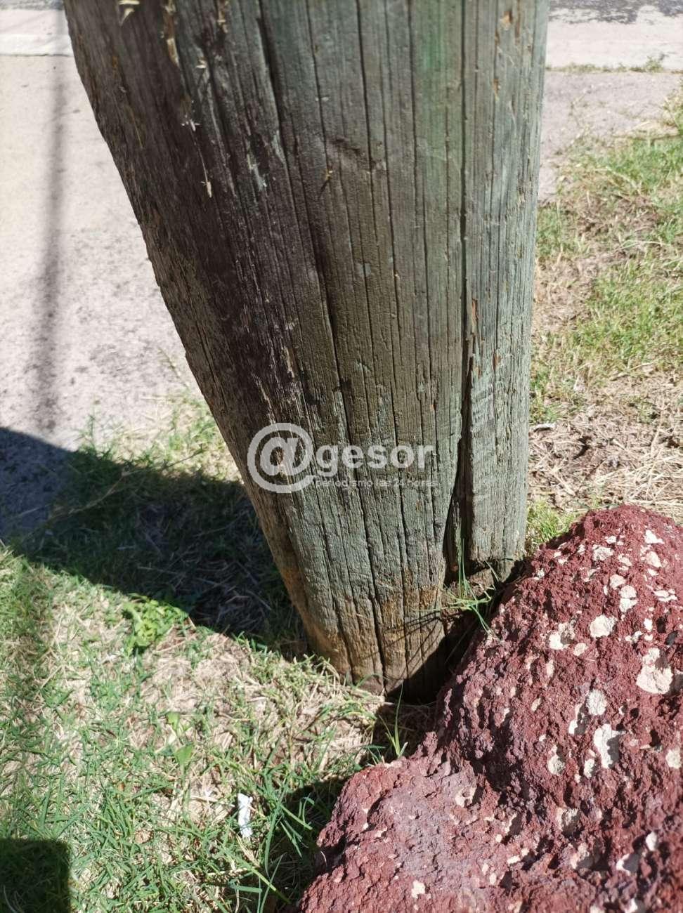 La columna quedó inclinada y quebrada en la base, lo que constituye un riesgo potencial para quienes circulan por el lugar, de acuerdo a lo que expresaron vecinos del lugar a @gesor.