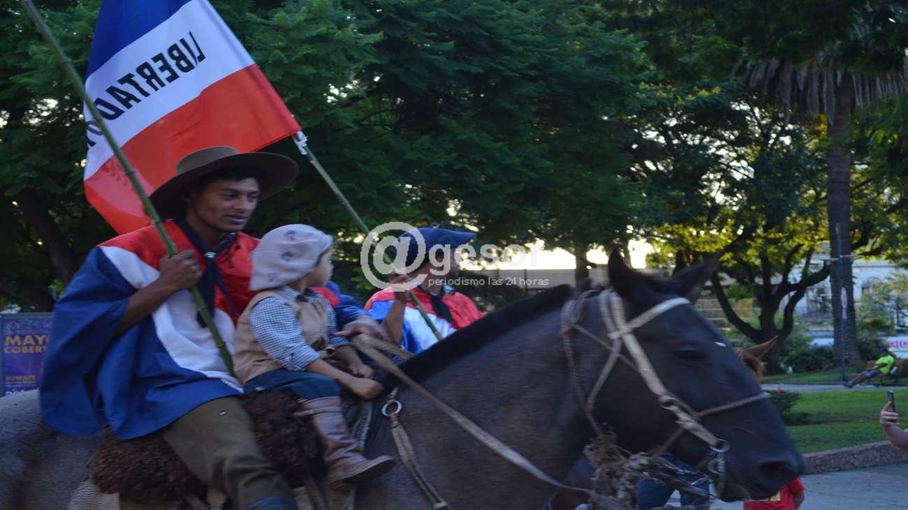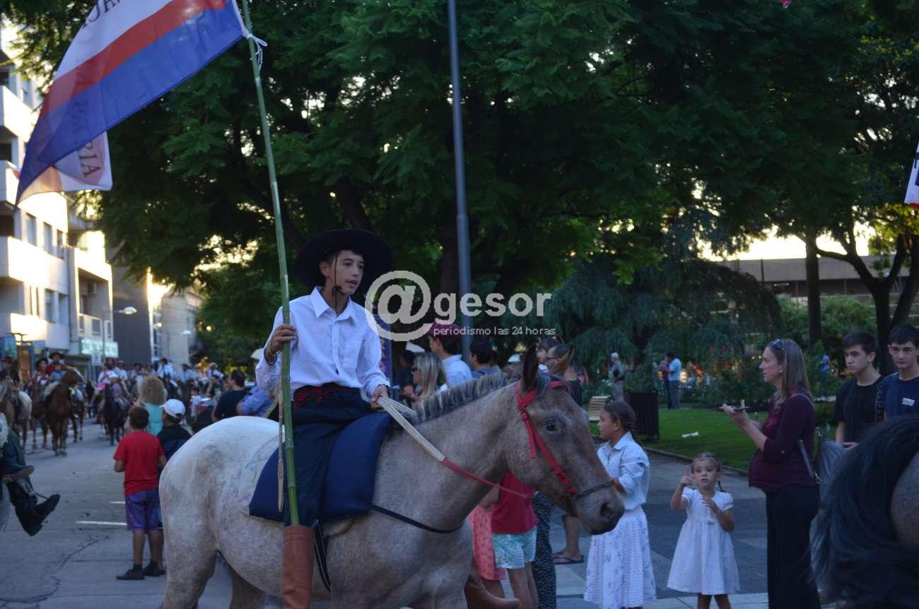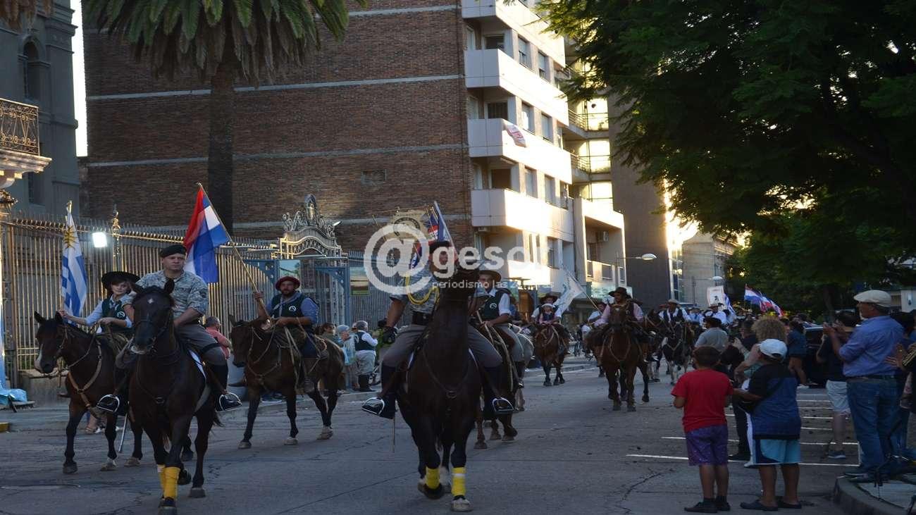 Este 28 de febrero en un nuevo aniversario de la fecha patria la columna gaucha llegó hasta el centro mercedario y al pie del monumento en Plaza Independencia presenciar el acto central, donde los estaban esperando autoridades nacionales y departamentales.