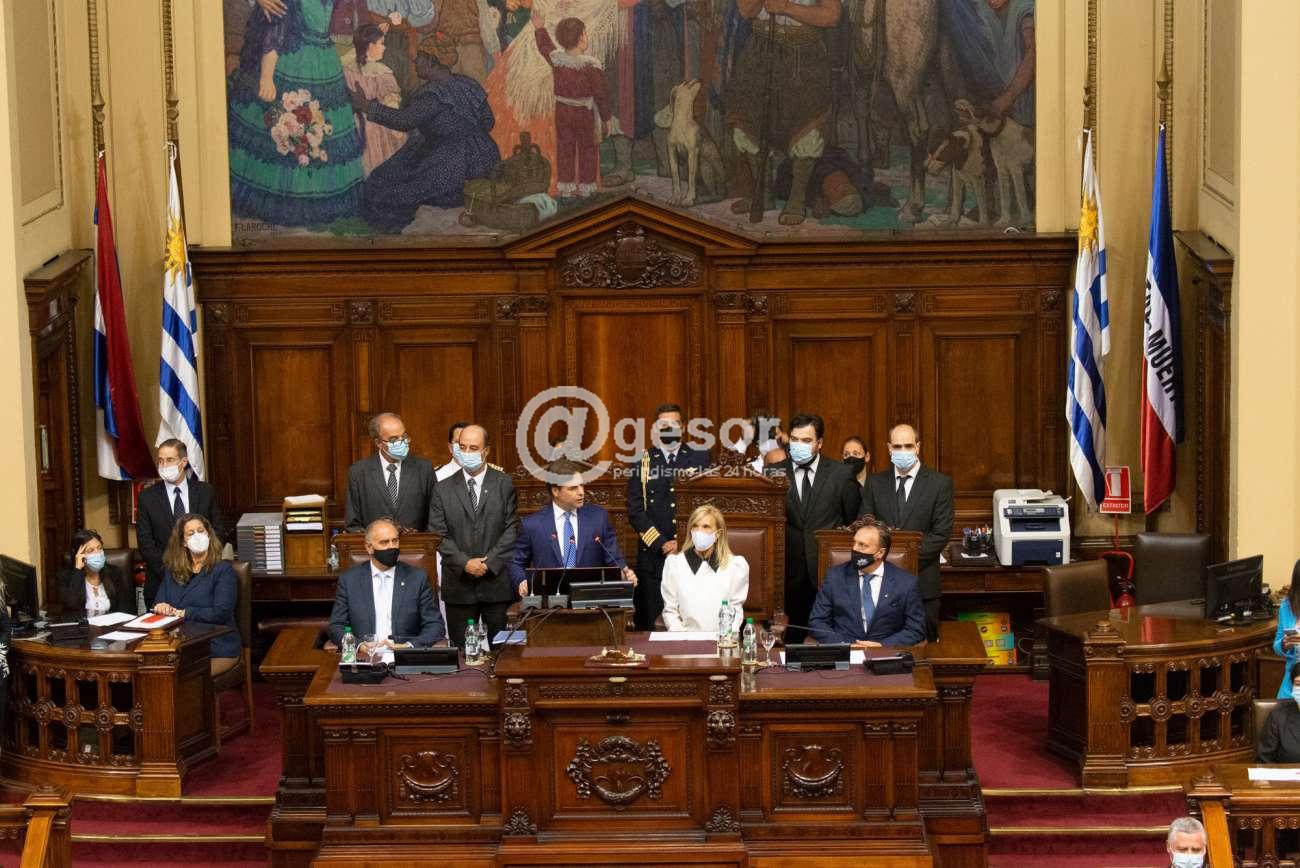 El Presidente de la República los saludó uno a uno y, junto a la Presidenta de la Asamblea General, se dirigieron hacia la sala de sesiones de la Asamblea General donde brindó su mensaje.