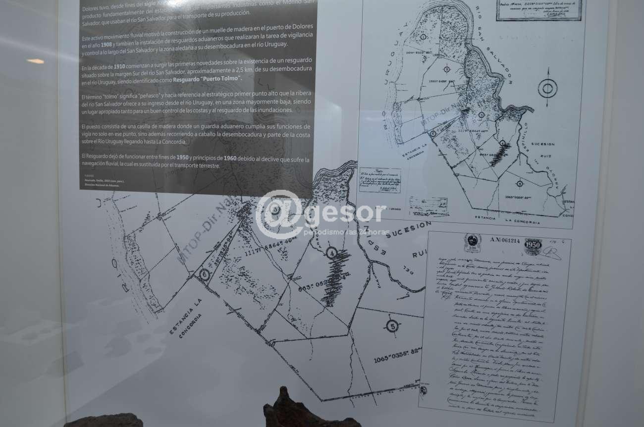 En este espacio de exposición del Centro Cultural Municipal de Dolores pueden apreciarse una mínima parte de los elementos recuperados . En la inauguración estuvieron presentes, junto al Director de Cultura, Javier Utermark, el responsable de Museos de la Intendencia, Lic. Aparicio Arcaus, y el dr. José López Mass, responsable del equipo de investigación arqueológica, los buzos José Luis Gómez y Alfonso Quian, junto a la prof. Nelsi Negrín, quienes realizaron los primeros hallazgos en el río San Salvador. Vestigios de lo que se presume podría ser la expedición de Juan Sebastián Gaboto, en 1527, y el primer asentamiento europeo en el río de la Plata.