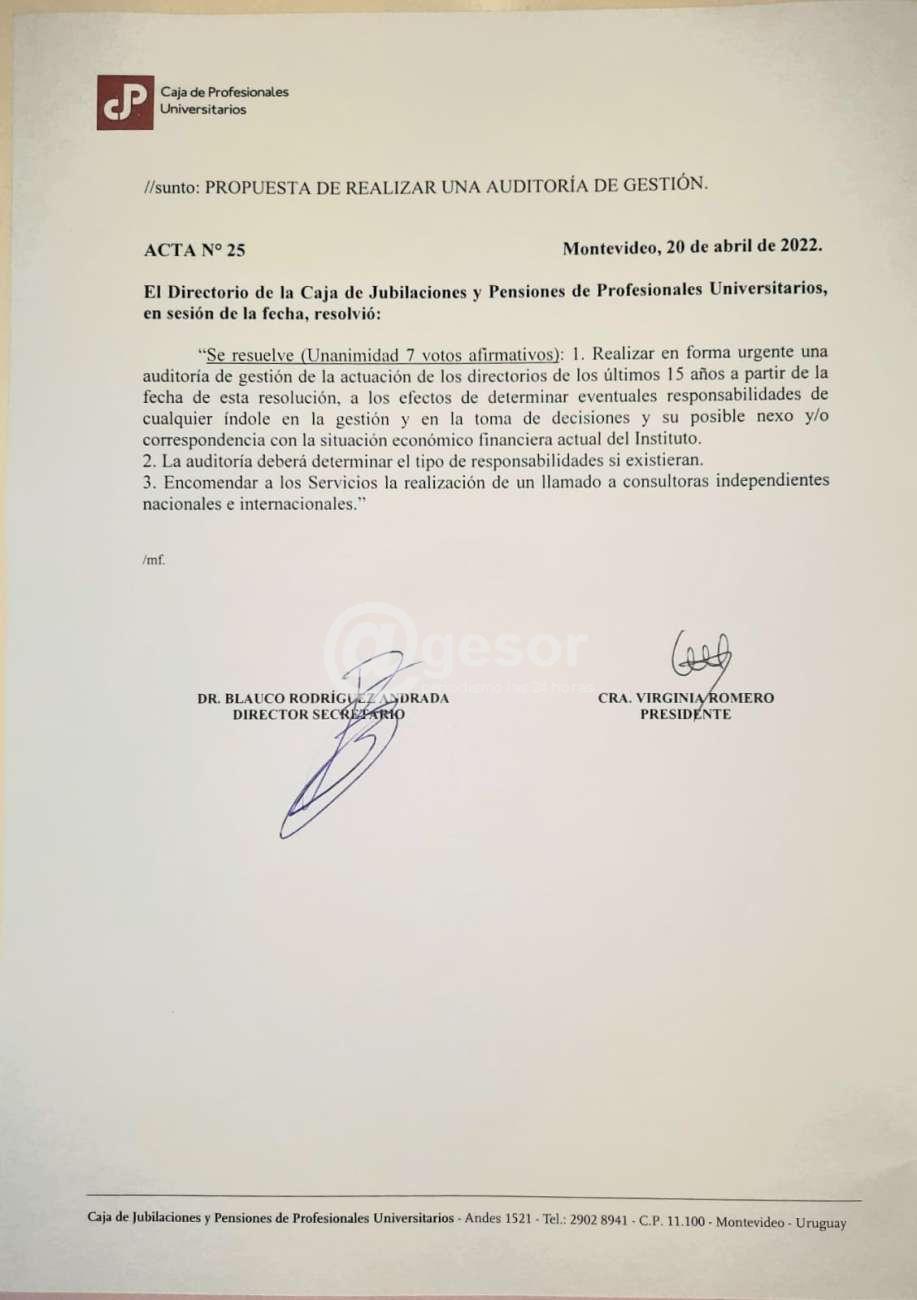 El Directorio de la Caja de Profesionales resolvió por unanimidad realizar en forma urgente una auditoría de gestión de la actuación de los directorios de los últimos 15 años.