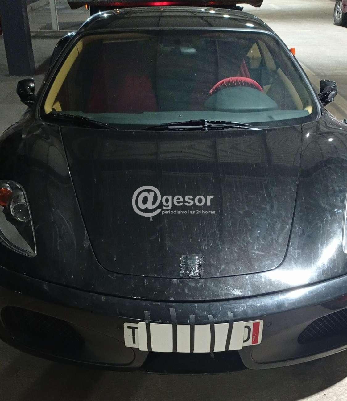 Dicho vehículo se encontraba con matrícula y logos de marca tapados con cinta negra; por lo que se procede a detener y solicitar documentación del mismo. Se constata que se trata de un vehículo matriculado en España marca Ferrari Modelo F430 F1 y con Admisión Temporal vencida en noviembre de 2018.