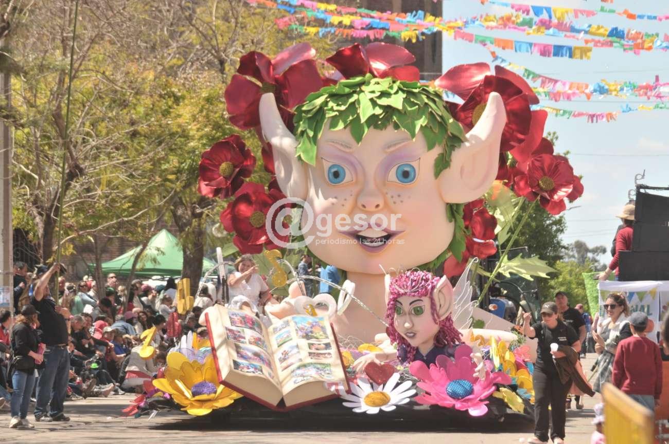 La carroza Nº 7 "Somos Raíces" que desfiló en la Fiesta Nacional de la Primavera en su 60ª edición desarrollada en Dolores, creada por los Terceros Unidos Liceo N° 1 ¨Dr. Roberto Taruselli¨, presenta como Princesas aspirantes a Reina a Pía Hansen y Dalma Jaime.