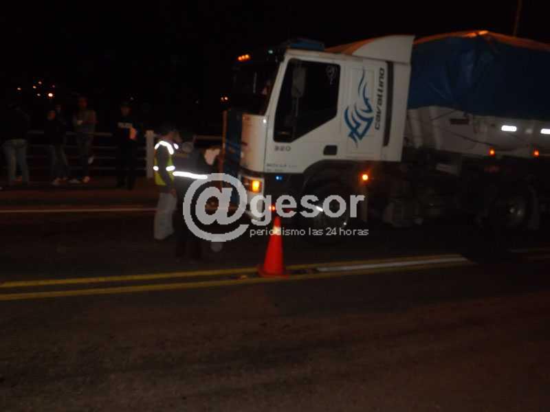 Pasadas las 22:00 horas de este miércoles una joven de 20 años encontró la muerte- según se presume- al arrojarse al paso de un camión que transitaba con un acoplado por ruta nacional N°2, sobre el Puente "Líber Seregni", a escasos metros de la ciudad de Mercedes. Se trata de la mujer de iniciales S.M.V., quien habría decidido autoeliminarse, de acuerdo a la hipótesis a la que apuntan los investigadores basada en los elementos reunidos de forma primaria.