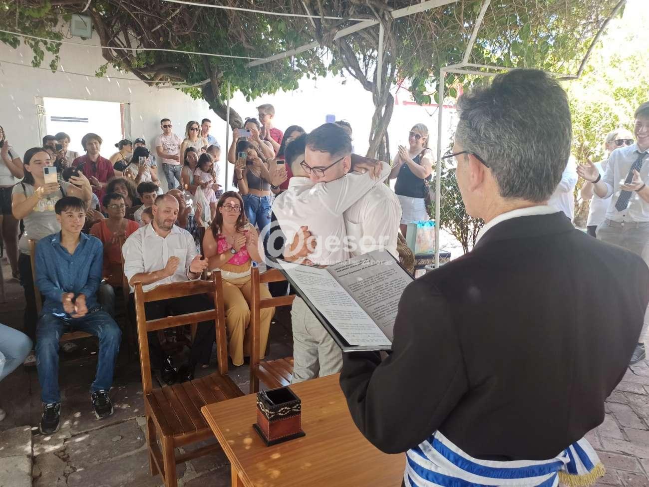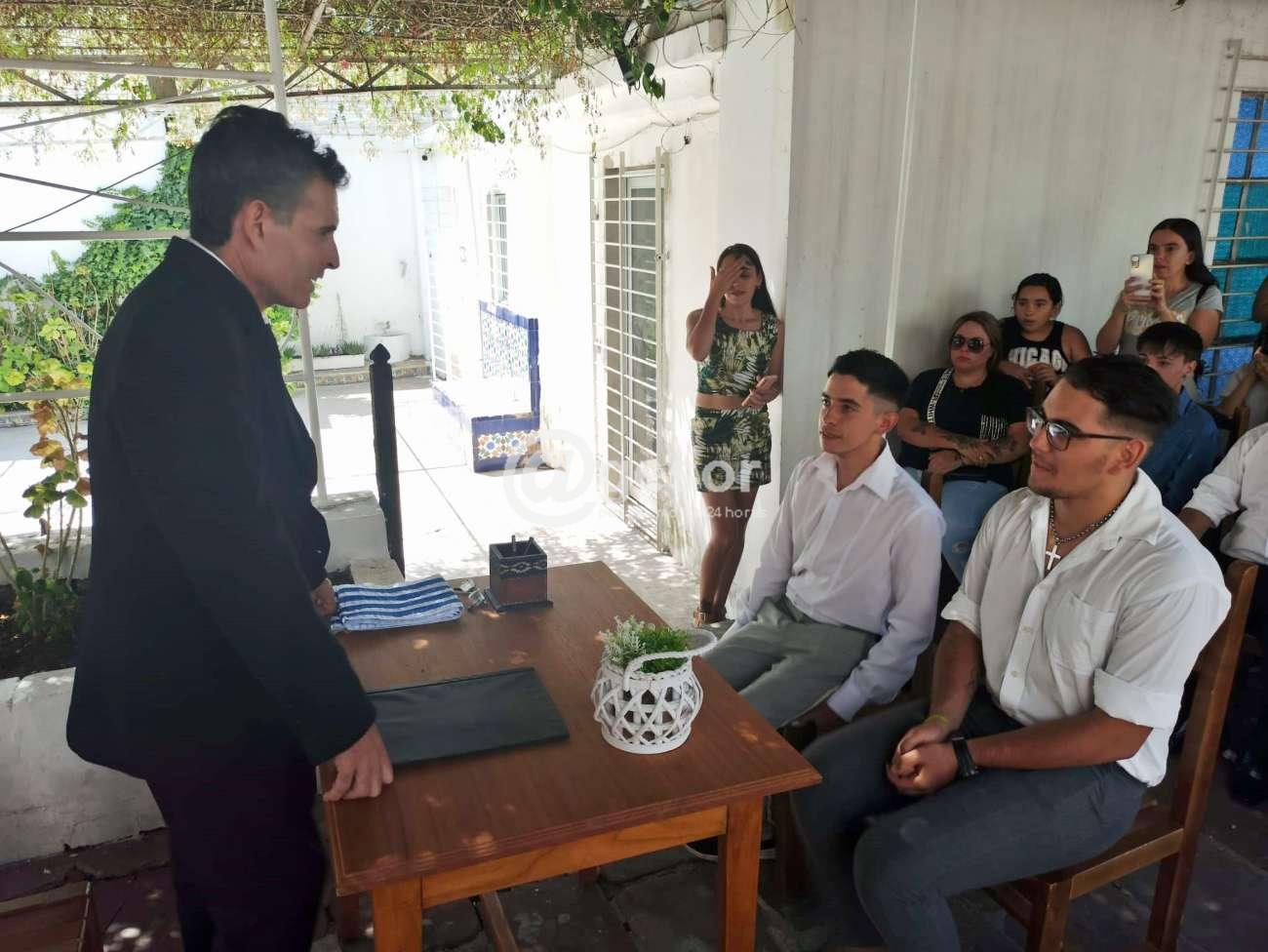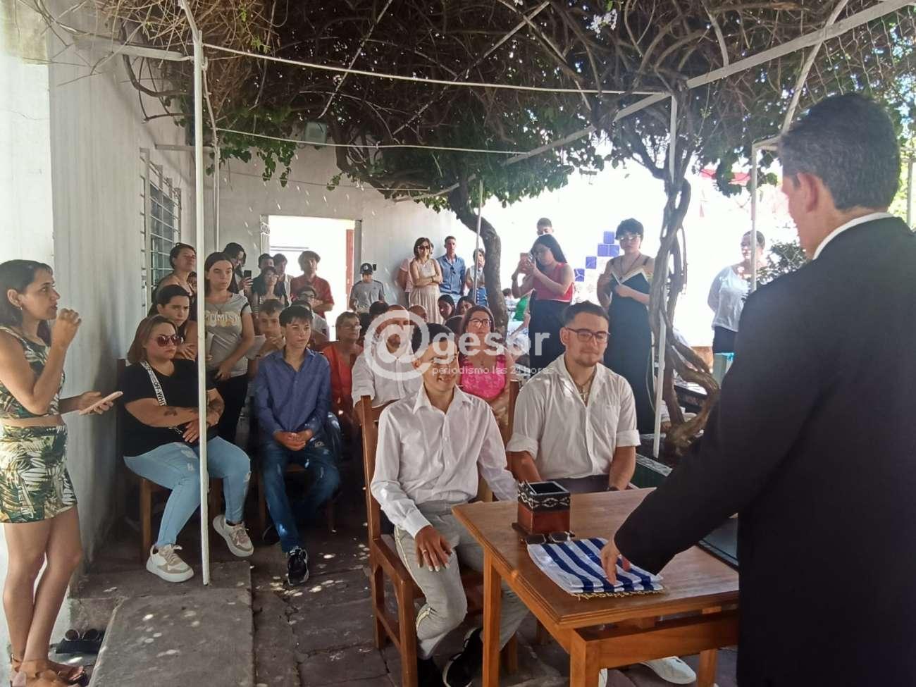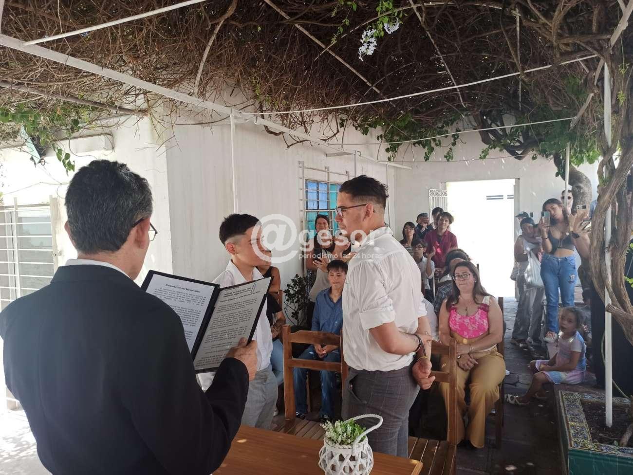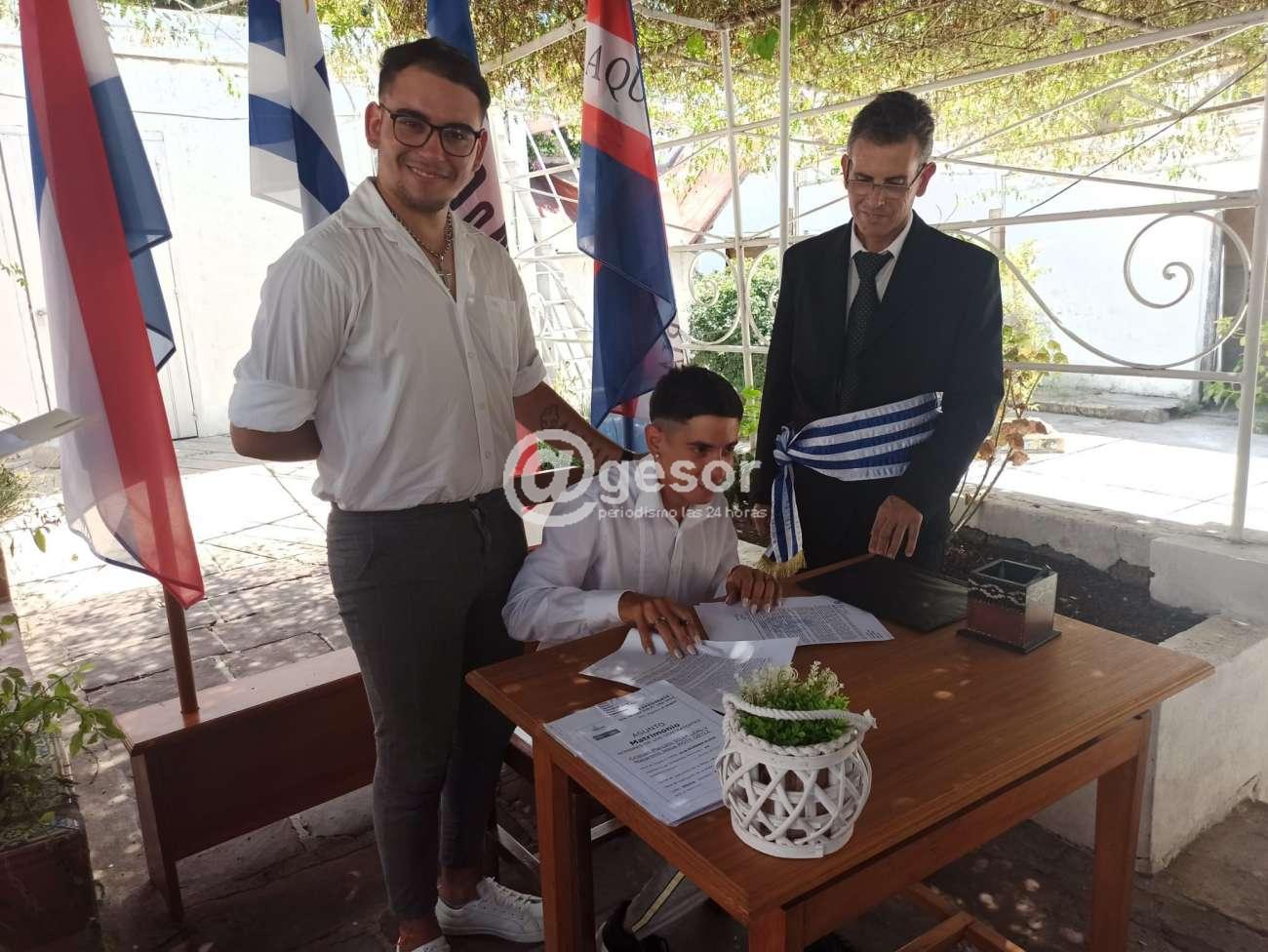 La ceremonia fue presidida por el Oficial de Estado Civil Dr. Wilde Lapido, asistido por la también Oficial de Estado Civil Sandra llovet, y los contrayentes son dos jóvenes de 19 años, Cristian Marcelo Silva Leal y Nazareno Jesús Mott Ortiz, quienes estuvieron acompañados de testigos, familiares y amigos en este momento tan especial.