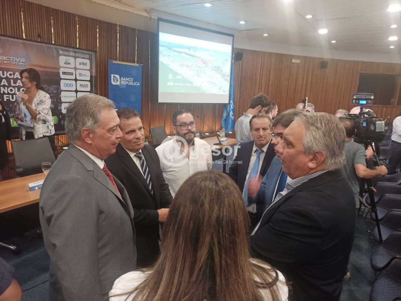 (Montevideo, por Juan Correa) En el Salón  19 de junio, del Banco República en Montevideo, se está desarrollando la presentación de la  edición Nº  26 de la Expoactiva Nacional.   Participan de la misma  el secretario de presidenta Alvaro Delgado,  autoridades de la Asociación Rural de Soriano, el Intendente Guillermo Besozzi, el Ministro de Ganadería, Fernando Matos, el subsecretario de ese ministerio, Ing. Agr.  Juan Ignacio Buffa, y  el presidente del  Banco República, Salvador Ferrer.