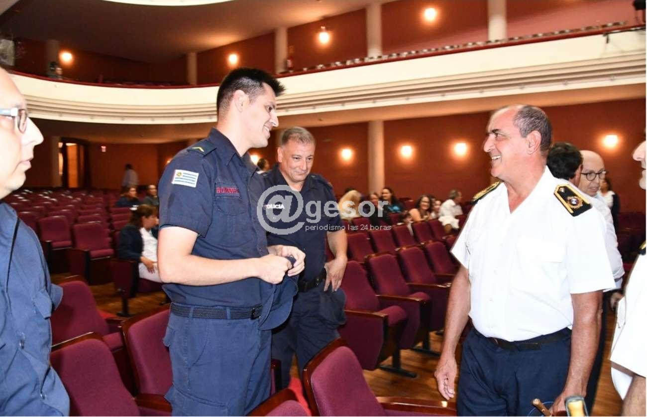 Este martes la Junta Departamental de Soriano, en el Teatro Municipal "28 de Febrero", homenajeó la actuación del Cabo Alexis Javier Rodríguez Romero, en el rescate de los efectivos del Destacamento de la Dirección Nacional de Bomberos Mercedes, Cabo Jorge Fernando Sierra Villanueva y Bombero Huber Mauricio González Núñez, cuando ambos se sintieran descompuestos al descender al pozo donde perecieron los dos masculinos en accidente laboral reciente. Dicho Policía (enfermero) pertenece a esta Unidad Ejecutora y presta servicio en el Centro Auxiliar Sanitario Departamental de la Dirección Nacional de Sanidad Policial. En esa ocasión acudió al lugar del hecho integrando la dotación de la Emergencia Médica Soriano convocada y al percatarse de la situación crítica por la que pasaban los dos camaradas de la DNB, no dudó en descender al pozo (con el aire contaminado por gases de combustión de una bomba de extracción) y atarlos a sogas con las que inmediatamente ambos fueron extraídos a la superficie.