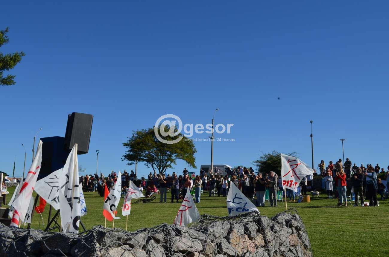 El Plenario Intersindical de Soriano realizó el acto por un nuevo aniversario del Día de los Trbajadores. En el Espacio Memoria los diferentes gremios que componen la central sindical se congregaron en esta jornada de reflexión y reinvidicaciones. Tal como estaba previsto fueron varios sindicatos que participaron de la parte oratoria, que en gran medida estuvo marcada por la reciente aprobación de la reforma de la Seguridad Social, temas vinculados a la Educación y hechos políticos de los últimos meses.