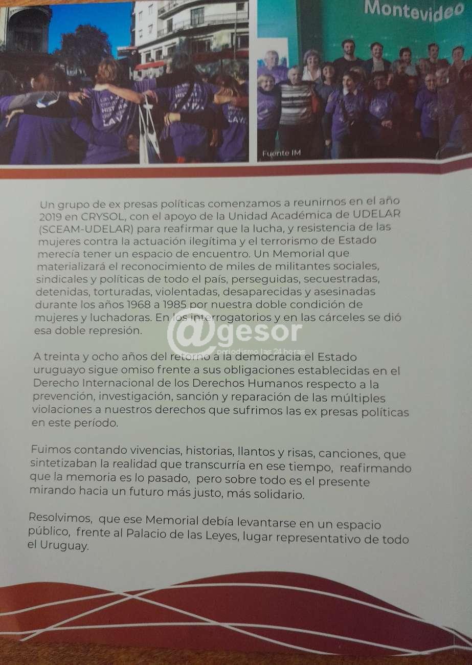 El Colectivo de ex Presas Políticas de Uruguay y Crysol invitan a toda la ciudadanía a participar del acto que se realizará ese día, a las 14 horas en Avenida de las Leyes y Colombia, Montevideo.