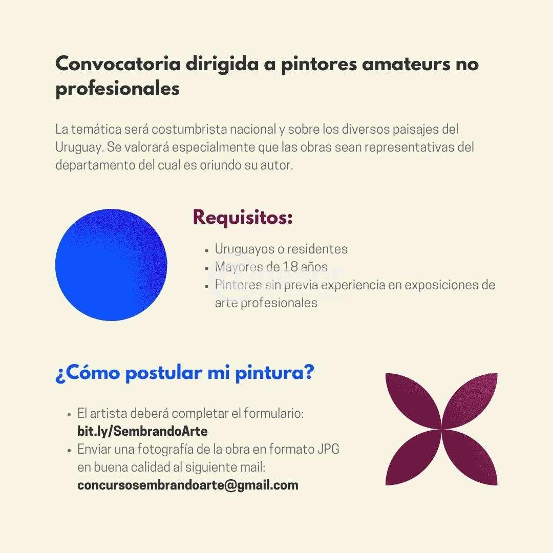 Para participar se debe ser uruguayo o residente, mayor de 18 años, pintor sin previa experiencia en exposiciones de arte profesionales.